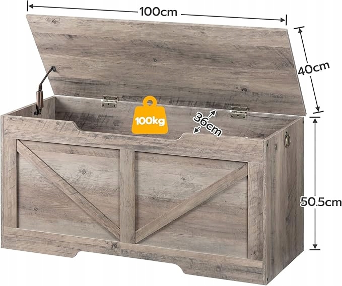 - Багато місця для зберігання: Розміри лавки коробки: 100 х 40 х 50,5 см. Ці скрині мають багато місця для зберігання під відкритною кришкою, що забезпечує багато можливостей зберігати всілякі іграшки, книги, сумки та інші колекціонерні предмети та розумно максимізують ваше місце. Лавка для сидіння, максимальне статичне навантаження до 100 кг