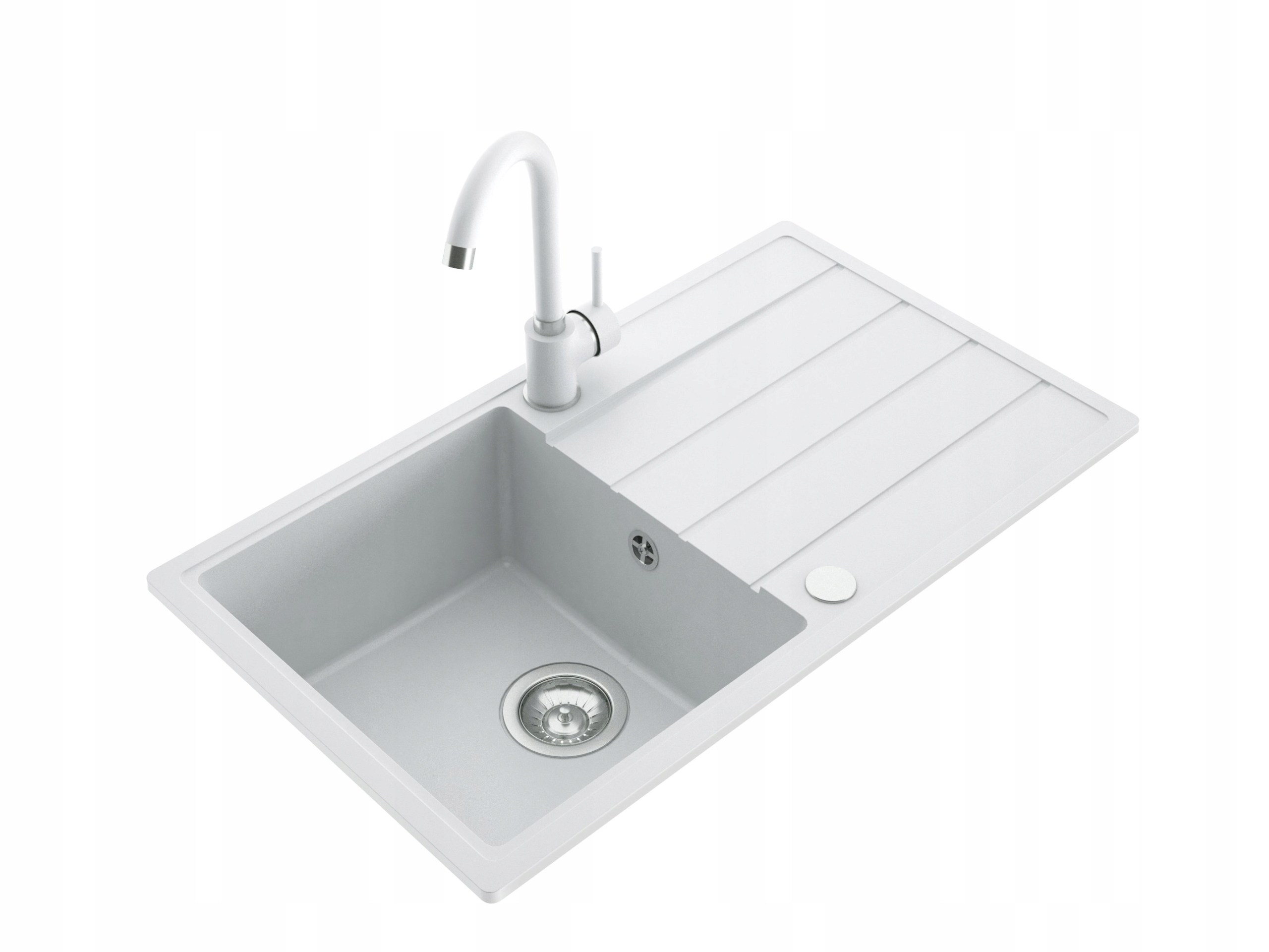 Гранітна мийка METRO з 1 чашею та довгим зливним отвором, в комплекті змішувач YORK і сифон із ручною пробкою