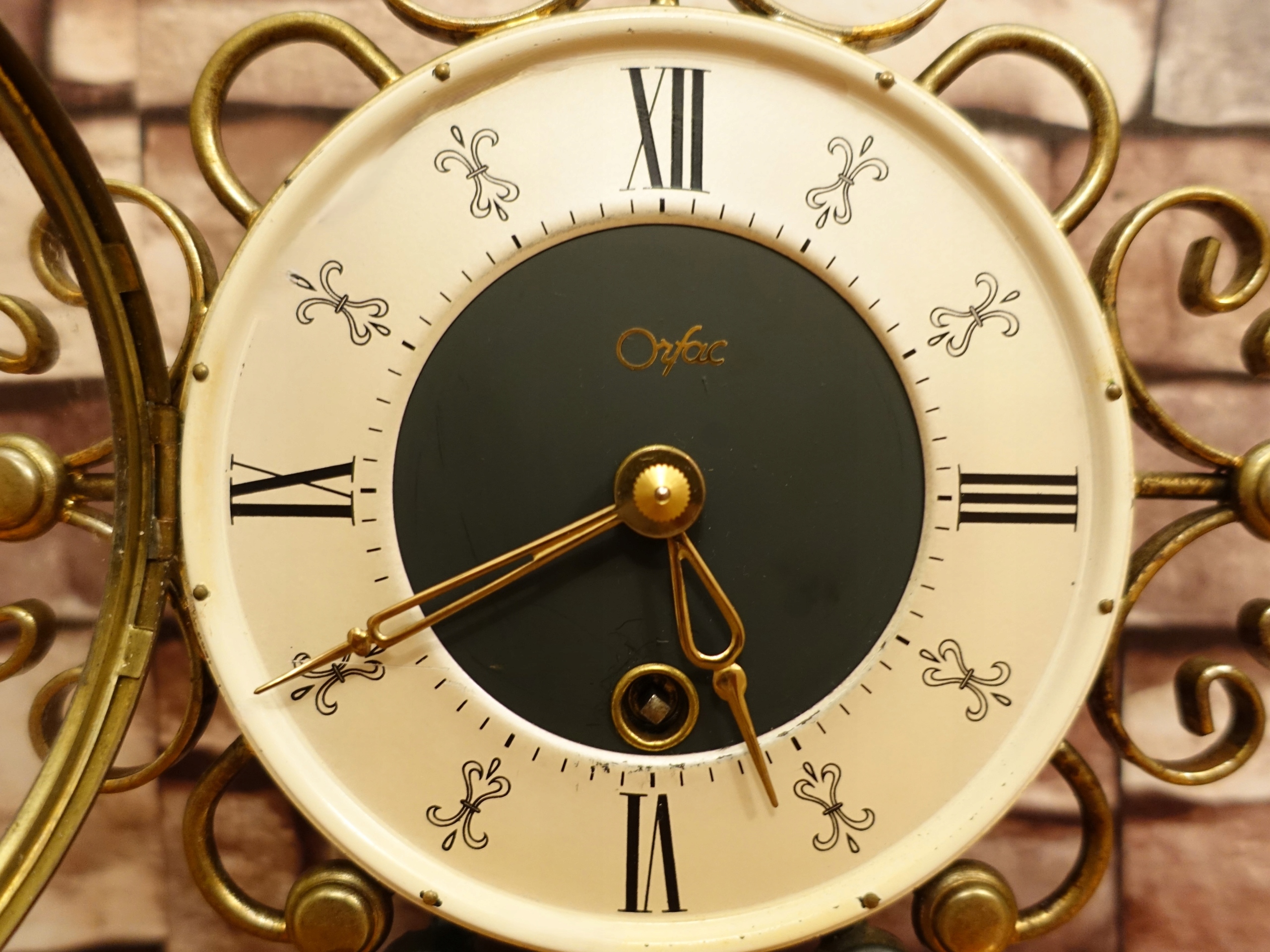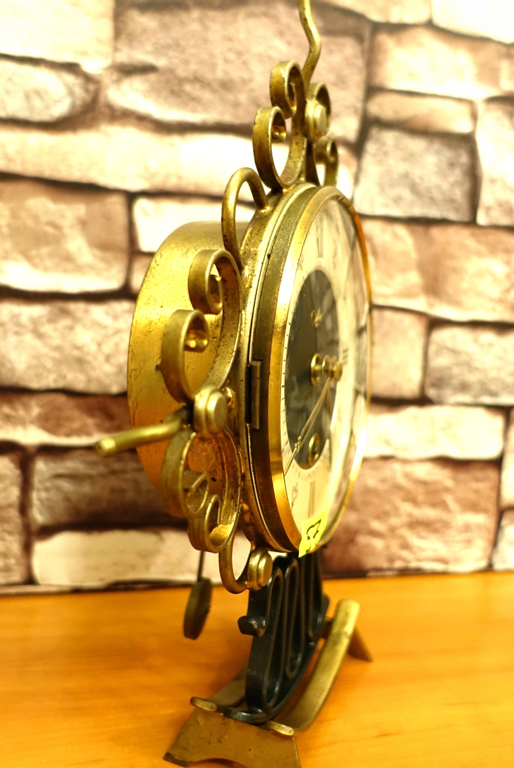 Маленький старий декоративний, німецький годинник, красиво виглядає на комоді, каміні або столі