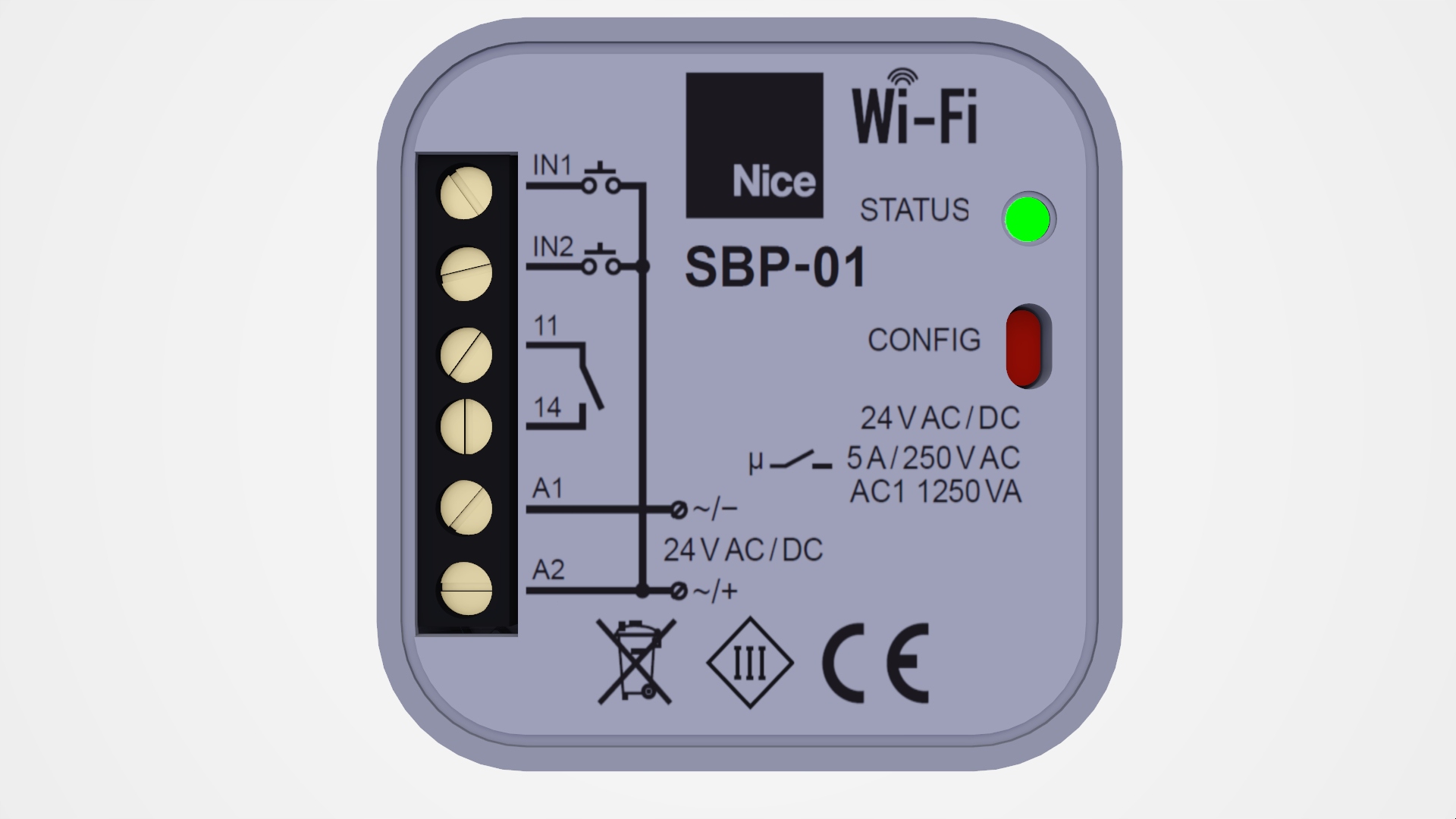 Модуль управління домашньою автоматизацією NICE WIFI SBP-01 з датчиком NICE INT, що інформує про відкриття/закриття актуатора*