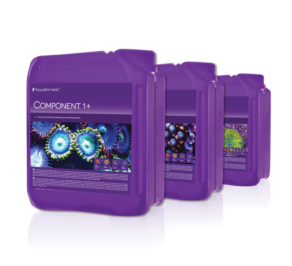 Повний набір талінгових рідин збільшився за допомогою необхідних мікроелементів. У наборі 5L компонент +1 (кальцій +магній), компонент +2 (KH), компонент +3 (мінеральна сіль).