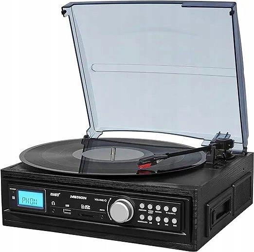 Поєднання класичного механізму з сучасною електронікою в одній моделі дає набагато більше можливостей, ніж мати програвач і радіо окремо, а також економить простір. Програвач Medion має два динаміки, якщо ви хочете його розширити, ви можете легко підключити зовнішні динаміки через вихід AUX. Однак якщо ви любите насолоджуватися музикою окремо, ви точно оціните 3,5-мм роз’єм для навушників. Все це доповнюється РК-дисплеєм із блакитним підсвічуванням.