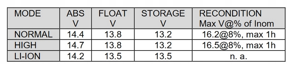 - Напруга заряджання: 14,4 В / 14,7 В / 16,5 В макс. 1 год