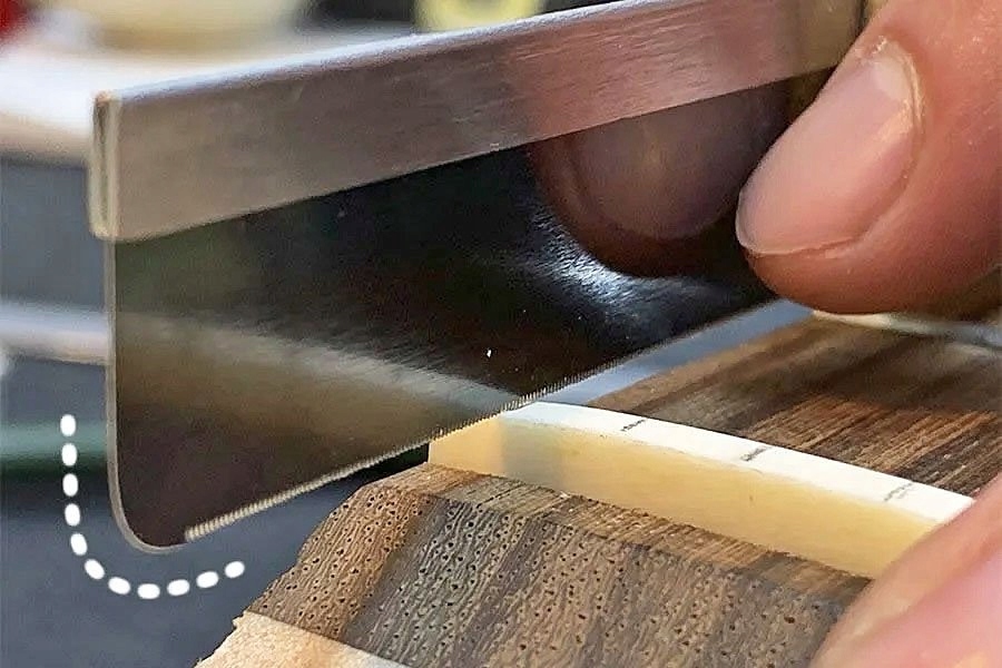 Професійний японський м'яч для різання сідла. Це дозволяє швидко і дуже точно зробити перші порізи під струнами в нещодавно зробленому сідлі. Дуже тонке лезо дозволяє вирізати навіть під найтоншими струнами і завдяки темному кольору ви можете точно побачити, де він вирізав. Закруглений край захищає інструмент, а користувач від випадкових пошкоджень, травми.