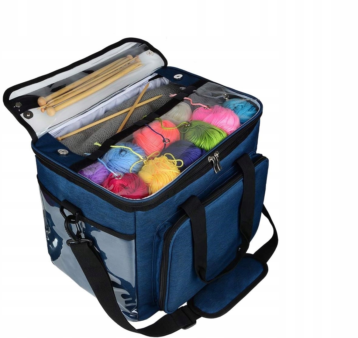 Чудова сумка для в’язання спицями та гачком: гнучка та прозора кришка з ПВХ дозволяє легко бачити, що всередині не відкриваючи сумку. Напіввідкрита верхня конструкція дозволяє поміщати незавершені проекти в сумку, не обрізаючи нитки.