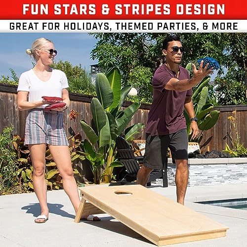 Двозоватне видання з домашнього турніру, подвійні мішки з кукурудзяною бобами, включають спеціалізовані гладкі поверхні та палички, які дають гравцям можливість кинути мішок з квасолею, або ту, яка прилипає. Гладка сторона виготовлена з торгових качок полотна, що дозволяє сумці з квасолею ковзати по поверхні дошки кукурудзи, що чудово підходить для забиття та стукання навколо сумоків суперника. Сторона палички - із замшевої замші, що зменшує ковзання і стискається на ігрову поверхню, в результаті чого компанії зупиняються, коли мішок з квасолею приземляється на дошці. Маючи можливість кинути мішок з квасолею, яка палить, може бути вигідною, коли точність має вирішальне значення і блокує опонента.