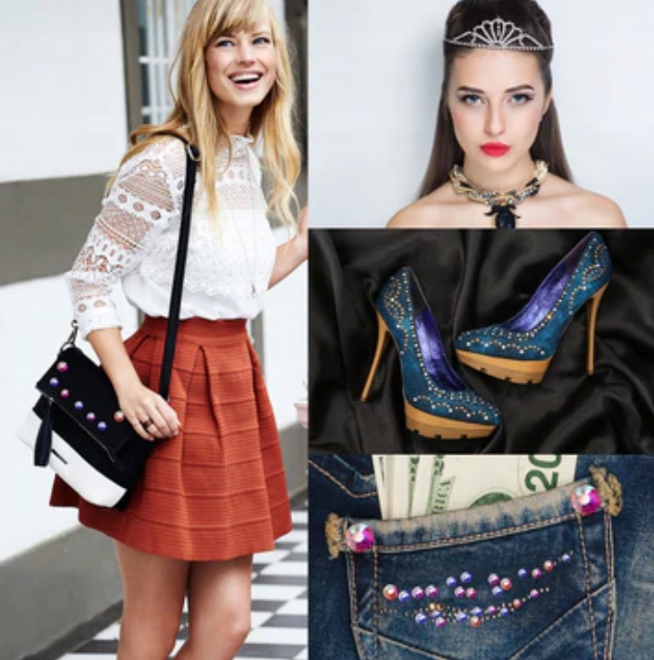 ⑤Wskazówki dotyczące użytkowania: Hotfix, tył ma szary klej, możesz użyć aplikatora Hot-Fix do wykonania swojego projektu