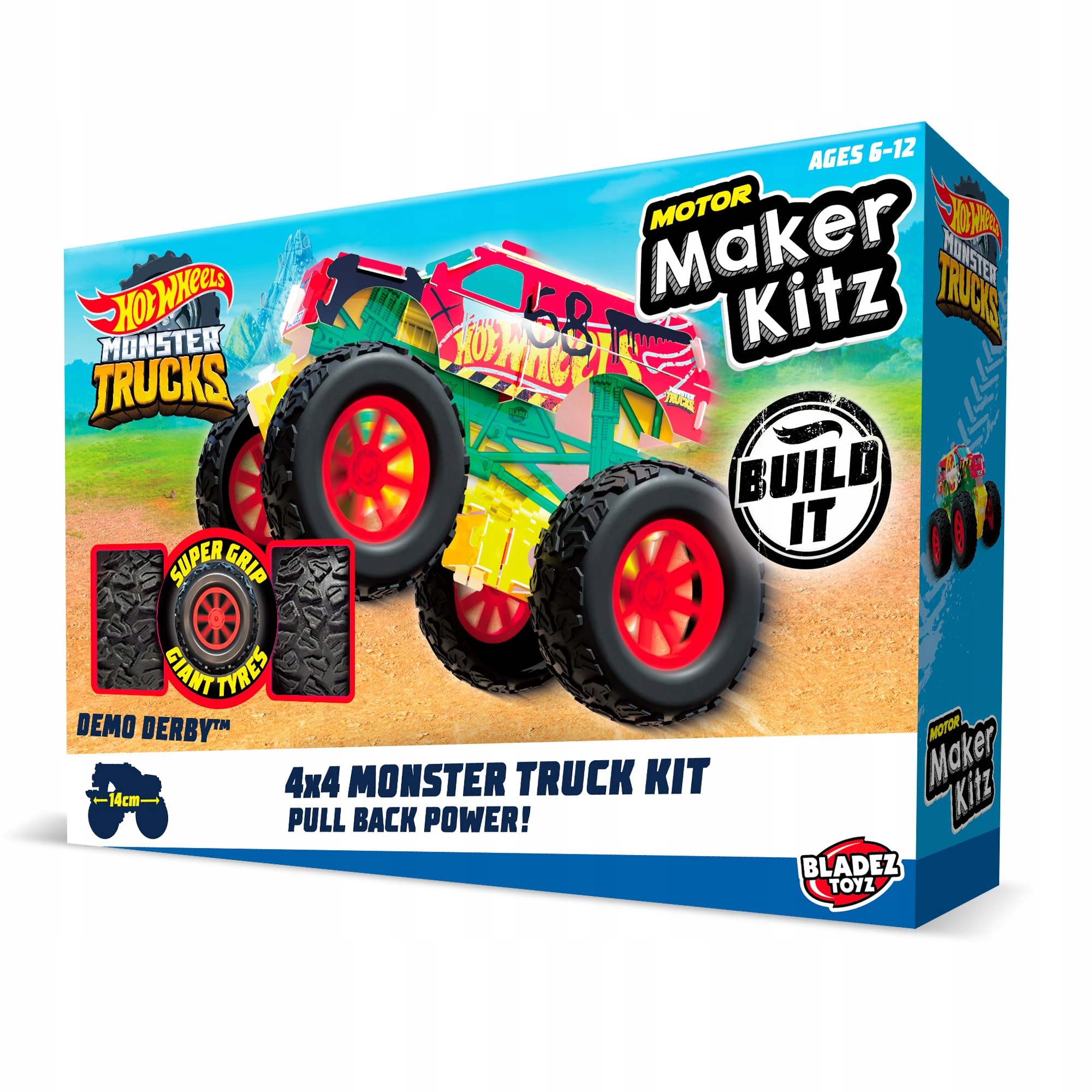 Іди великі з виробником Monster Trucks Kitz! Зберіть запчастини, додайте гігантські колеса з потужністю 4x4 і візьміть на себе найсміливішу місцевість! Вони навіть Wheelie! Нові стилі Mega Wrex & Bone Shaker Alessable зараз!