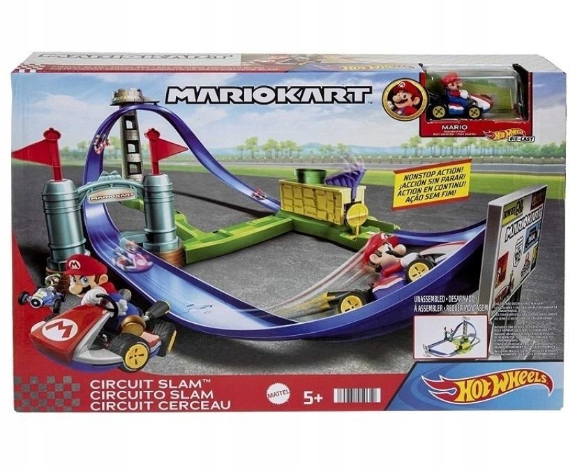 Доріжка з вежею та пусковою установкою із серії Mariokart стане джерелом натхнення для чудових і веселих розваг, які ніколи не закінчаться. У набір входить одна машина з фігуркою Маріо за керуванням. Набір Circuit Slam призначений для дітей старше 5 років.