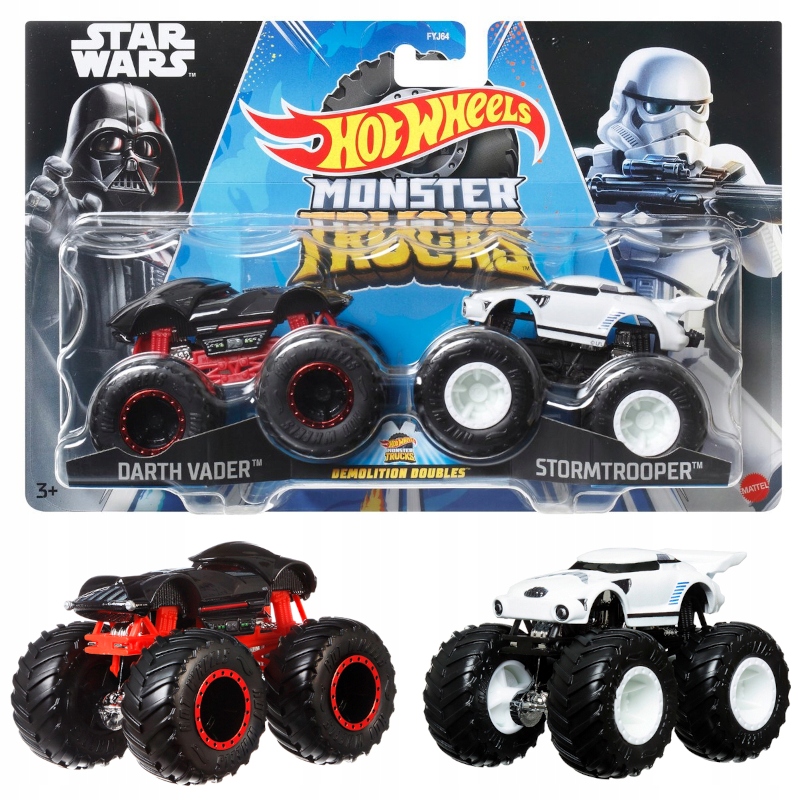 Дві упаковки Hot Wheels Monster Trucks представляє гоночні автомобілі на величезних колесах, відсилаючи до улюбленої Зоряної війни серія b>s, створена з неймовірною увагою до деталей.