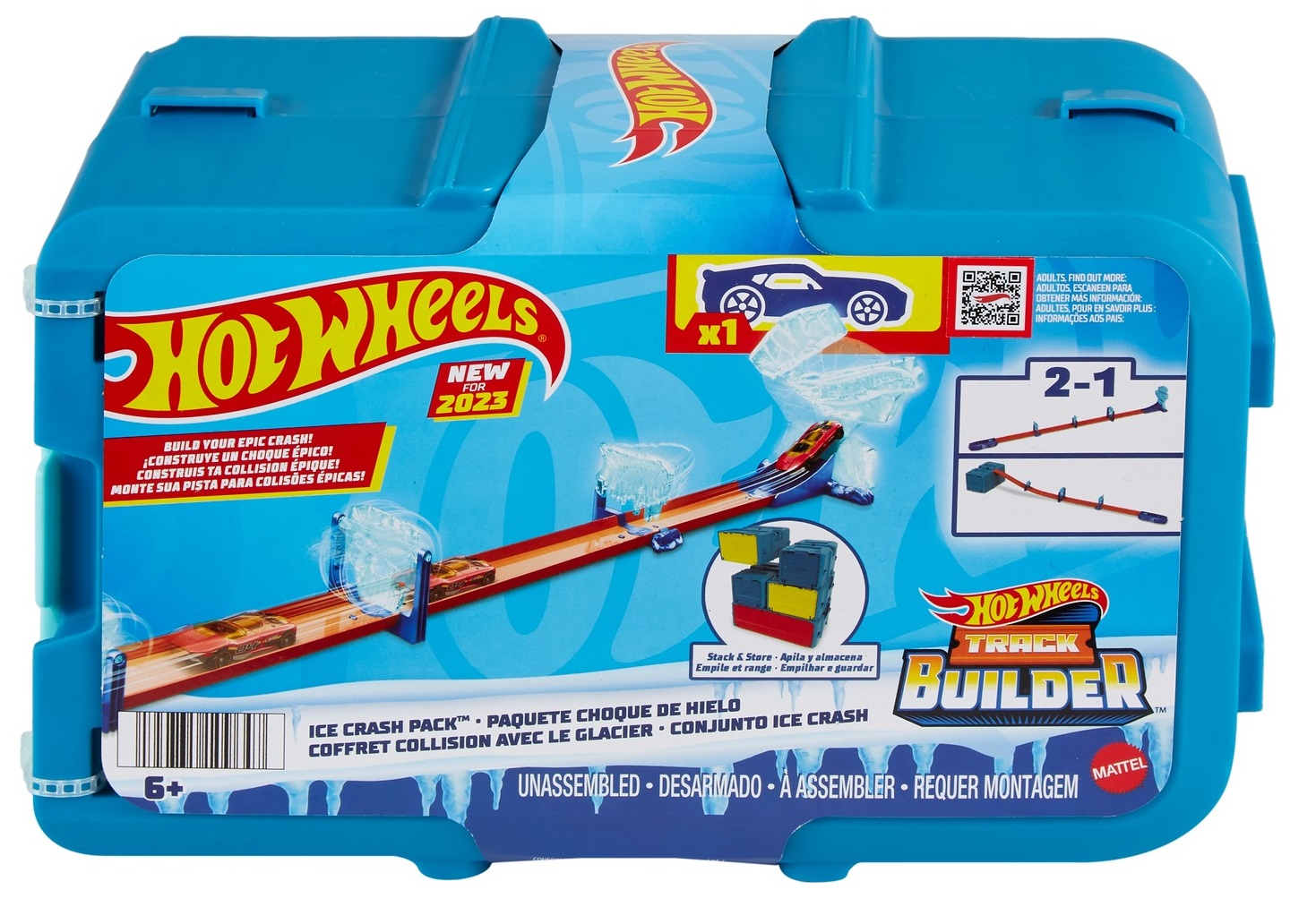 Діти можуть побудувати одну з чотирьох запропонованих конфігурацій доріжок або створіть свій власний, змішуючи та поєднуючи їх з іншими треками Hot Wheels®. Додаткові набори треків продаються окремо за наявності.