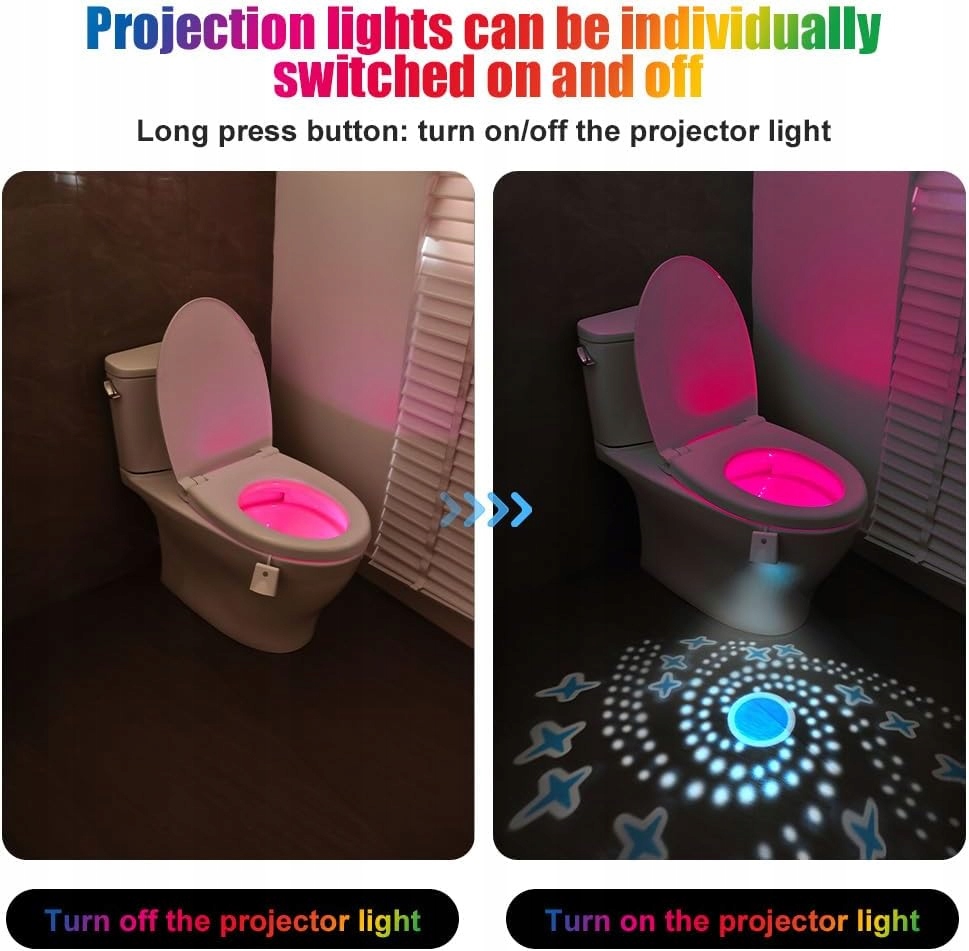 ⭐【16 КОЛЬОРІВ СВІТОДІОДІВ І КУТ 120 ГРАДУСІВ】 Ці сяючі лампи для унітазу освітлюють унітаз і роблять використання горщика цікавим. Можливість зміни 16 кольорів дозволяє повернути або оформити унітаз однотонним кольором.
