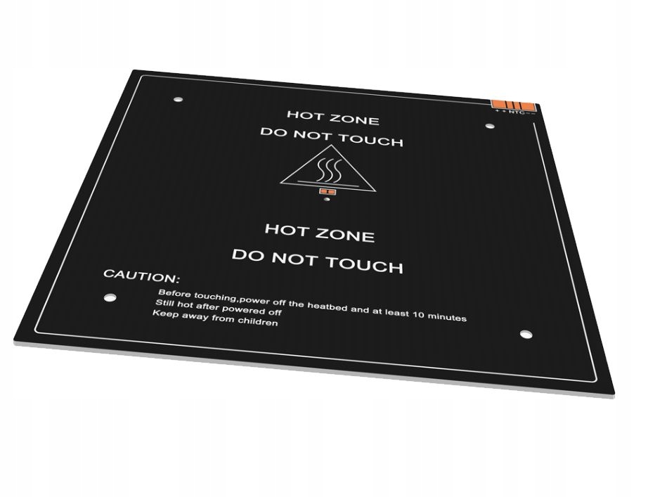 вогнище, тобто 3D-таблиця опалення. Підходить, серед інших, принтери Creality Ender-3. Не рекомендується торкатися таблиці раніше, ніж 10 хвилин після відключення джерела живлення.