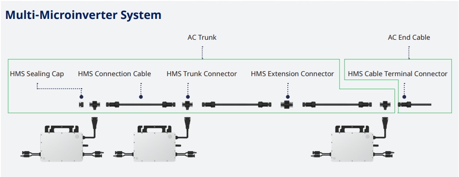 Кабельна система HMS Flex — це інноваційне рішення, призначене для мікроінверторів серії HMS Hoymiles. Використання гнучких аксесуарів робить всю систему зручною та простою. Встановлення надзвичайно швидке завдяки дизайну plug and play.