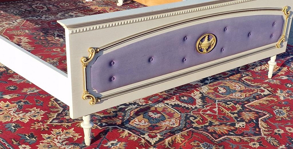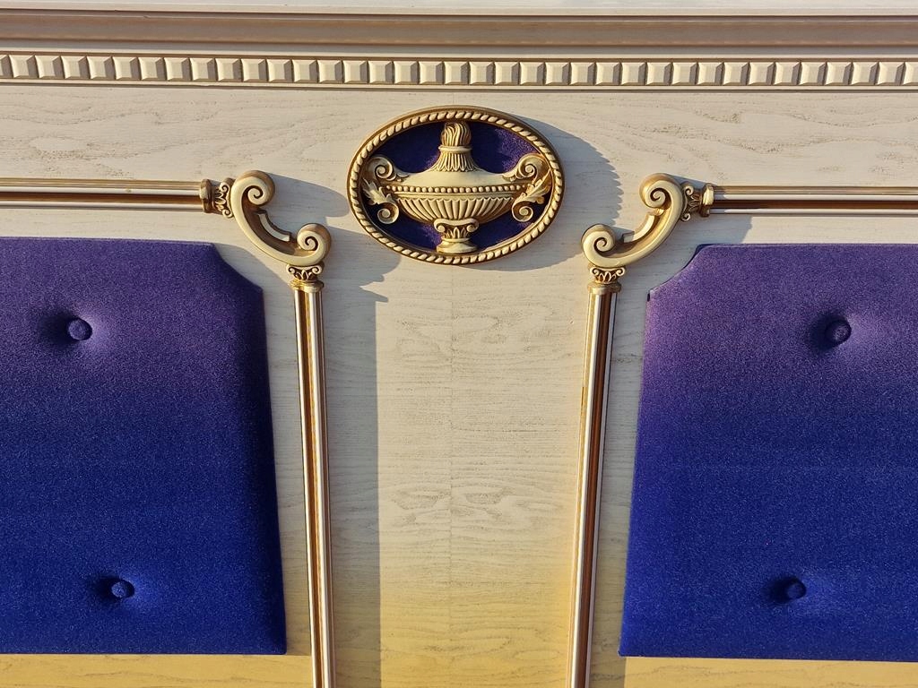 Ліжко в білому кольорі з легким екрю, з мотивами грецьких ваз