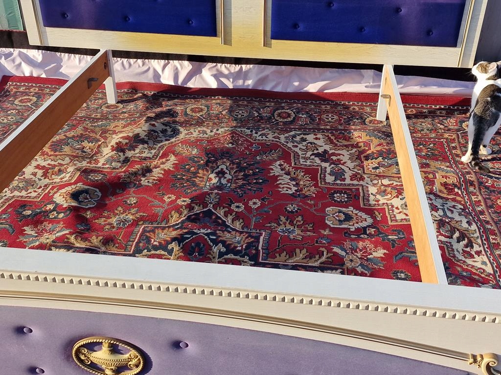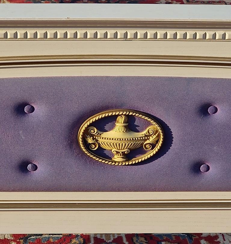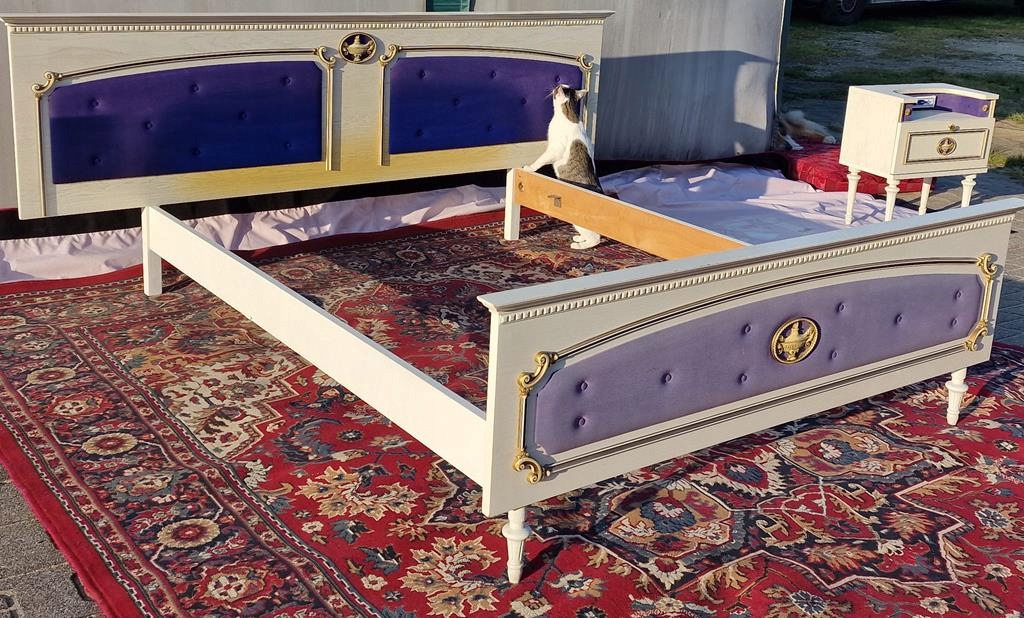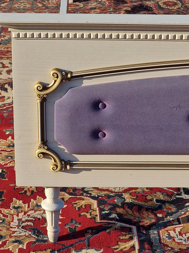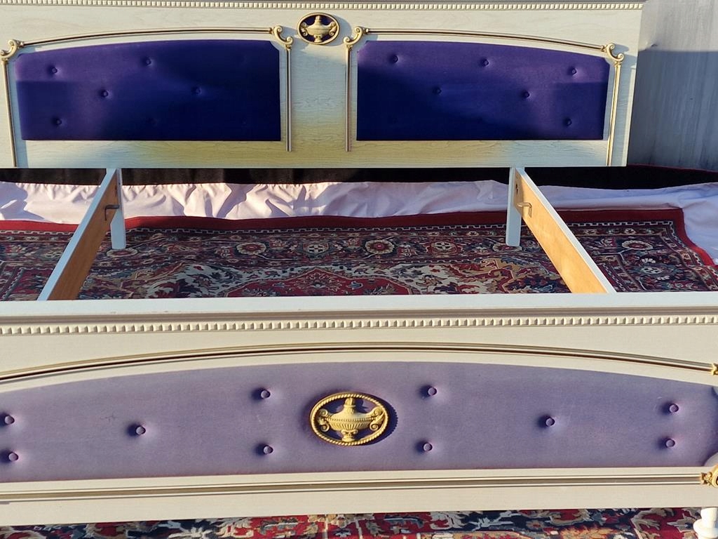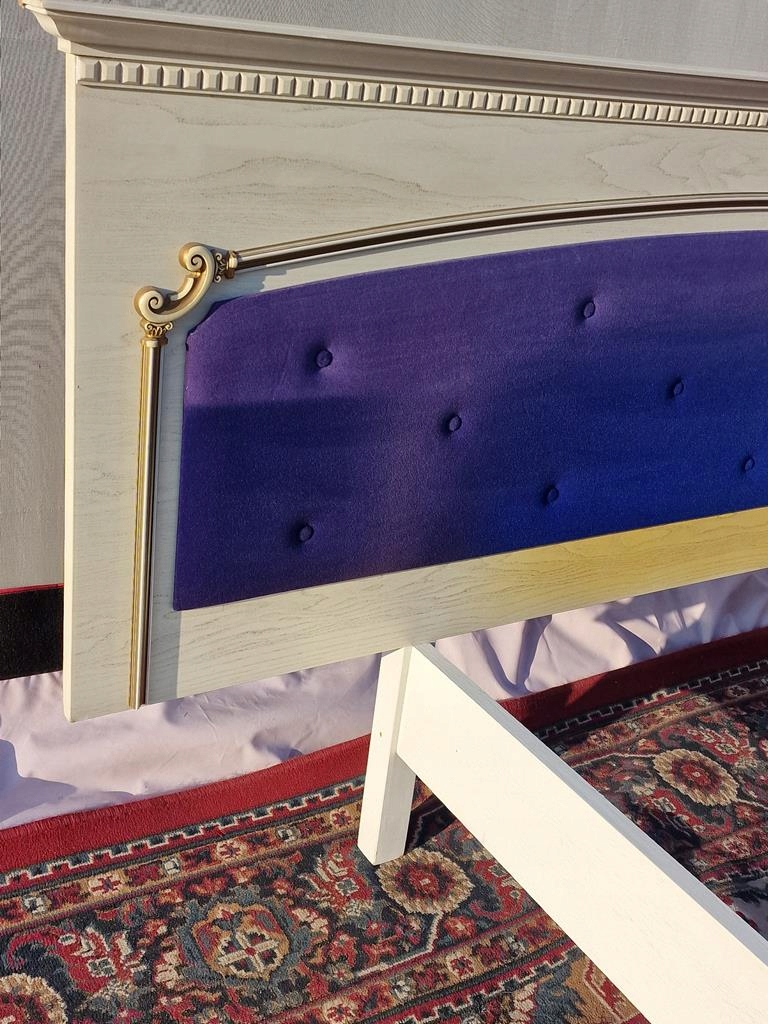 Узголів'я та передня частина оббиті блакитною тканиною - передня частина дуже вицвіла - рекомендується заміна всього блоку
