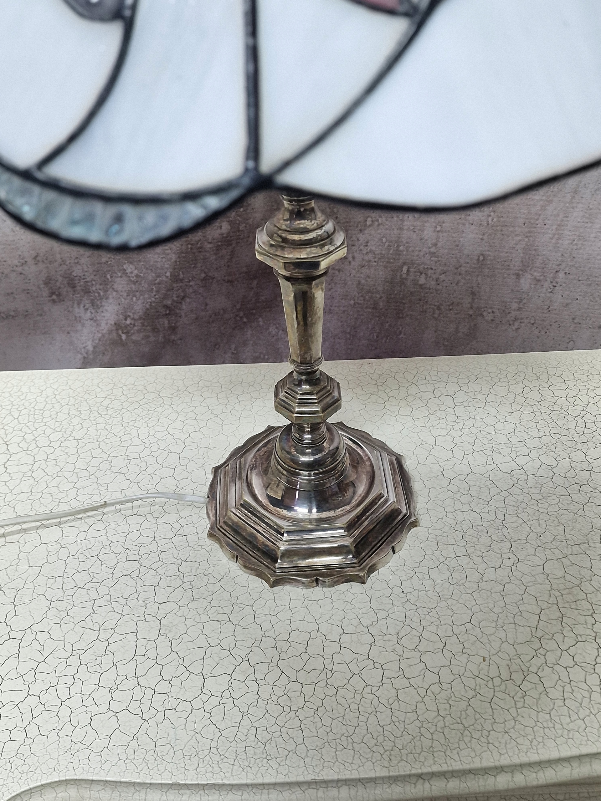 HP EFFECTIVE HIGH TIFFANY ЛАМПА НА СТОЛ, КОМОД, посріблена латунь