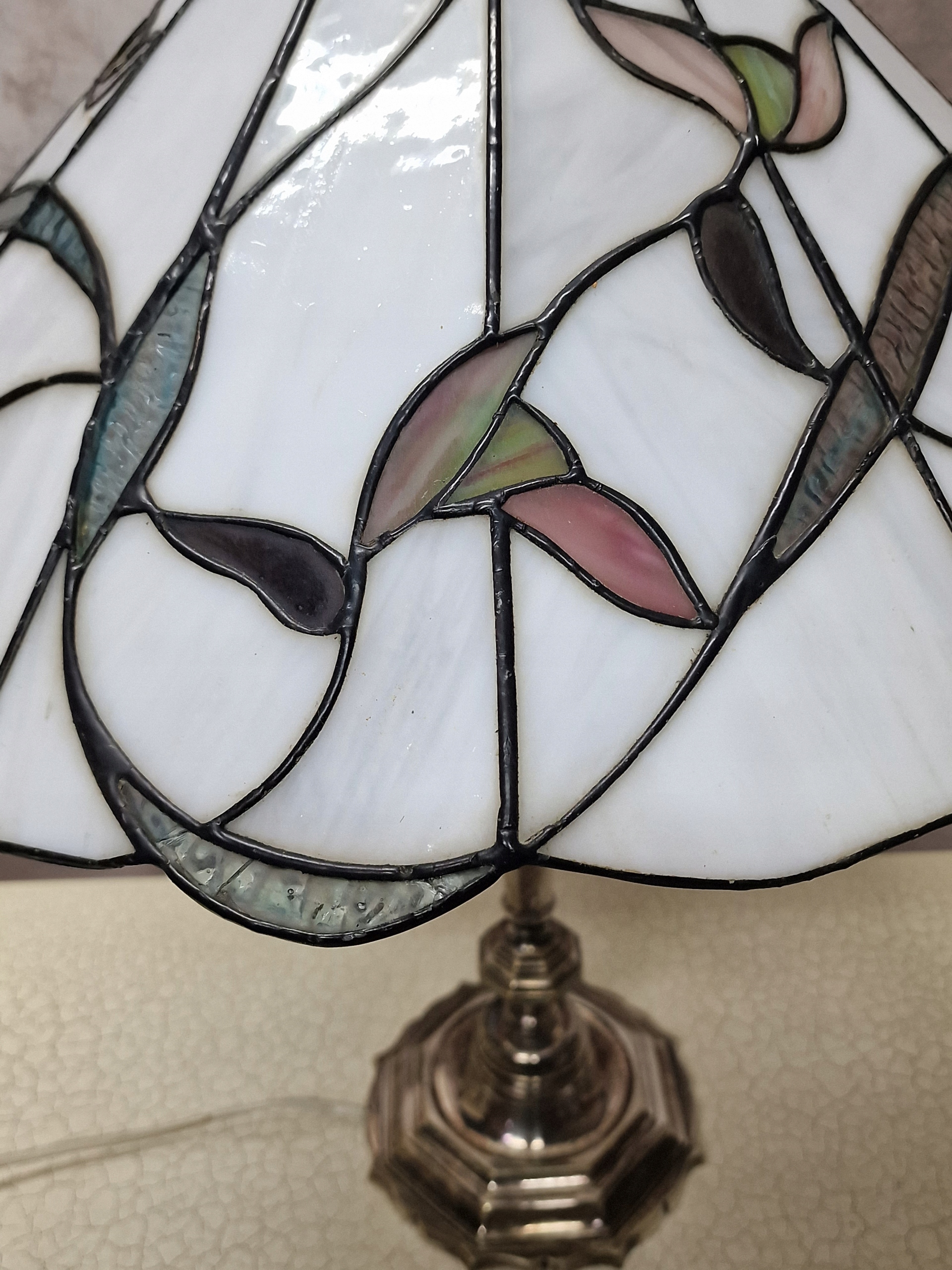Абажур Tiffany з білого скла, зі вставками зі скла пастельних тонів