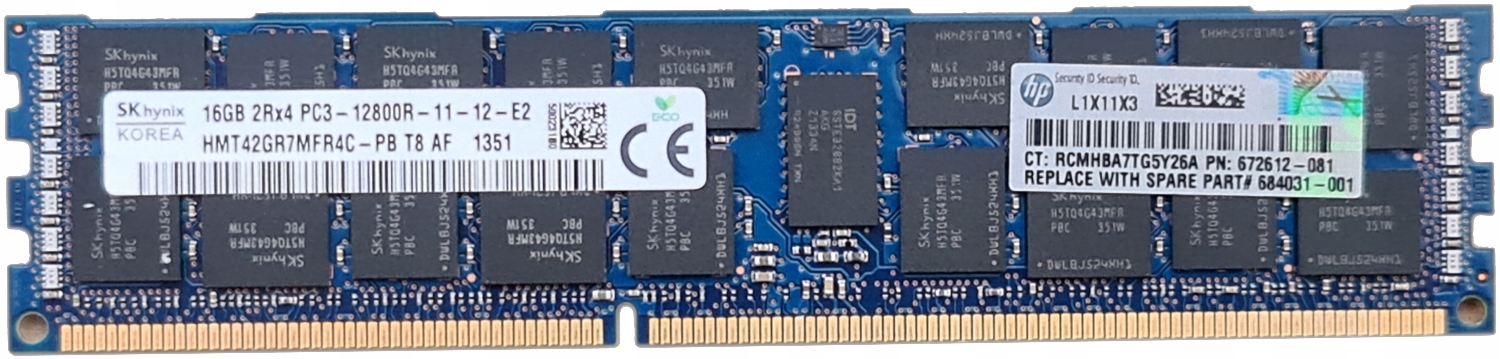 Детальні характеристики:HP Hynix 16GB 2RX4 PC3-12800R HMT42GR7MFR4C-PB 672612-081 672612-081
