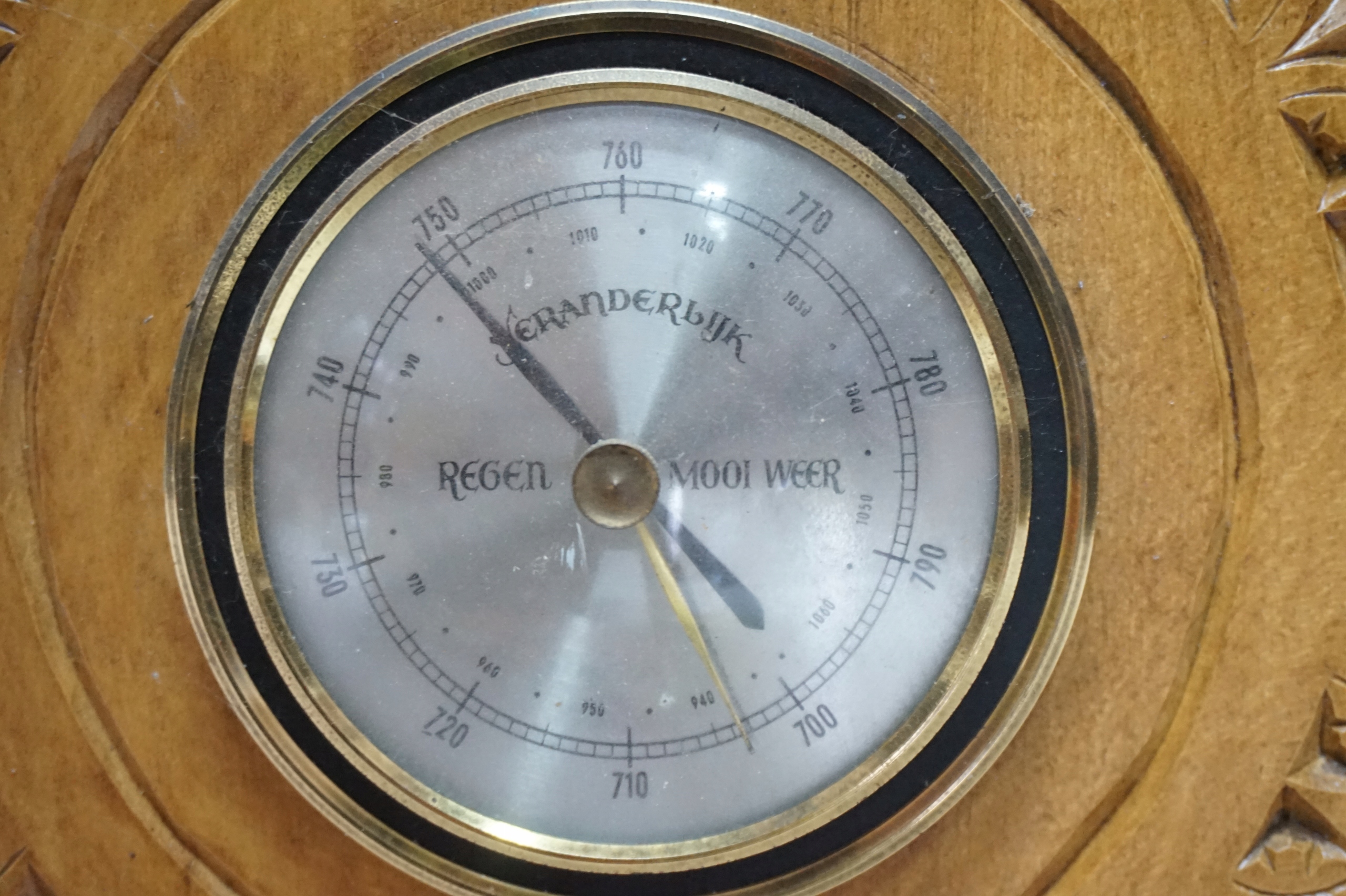 На звороті монограма та цифра (рік) 1998 р., ймовірно дата Цей барометр був подарований людині з монограмою E.S. Б