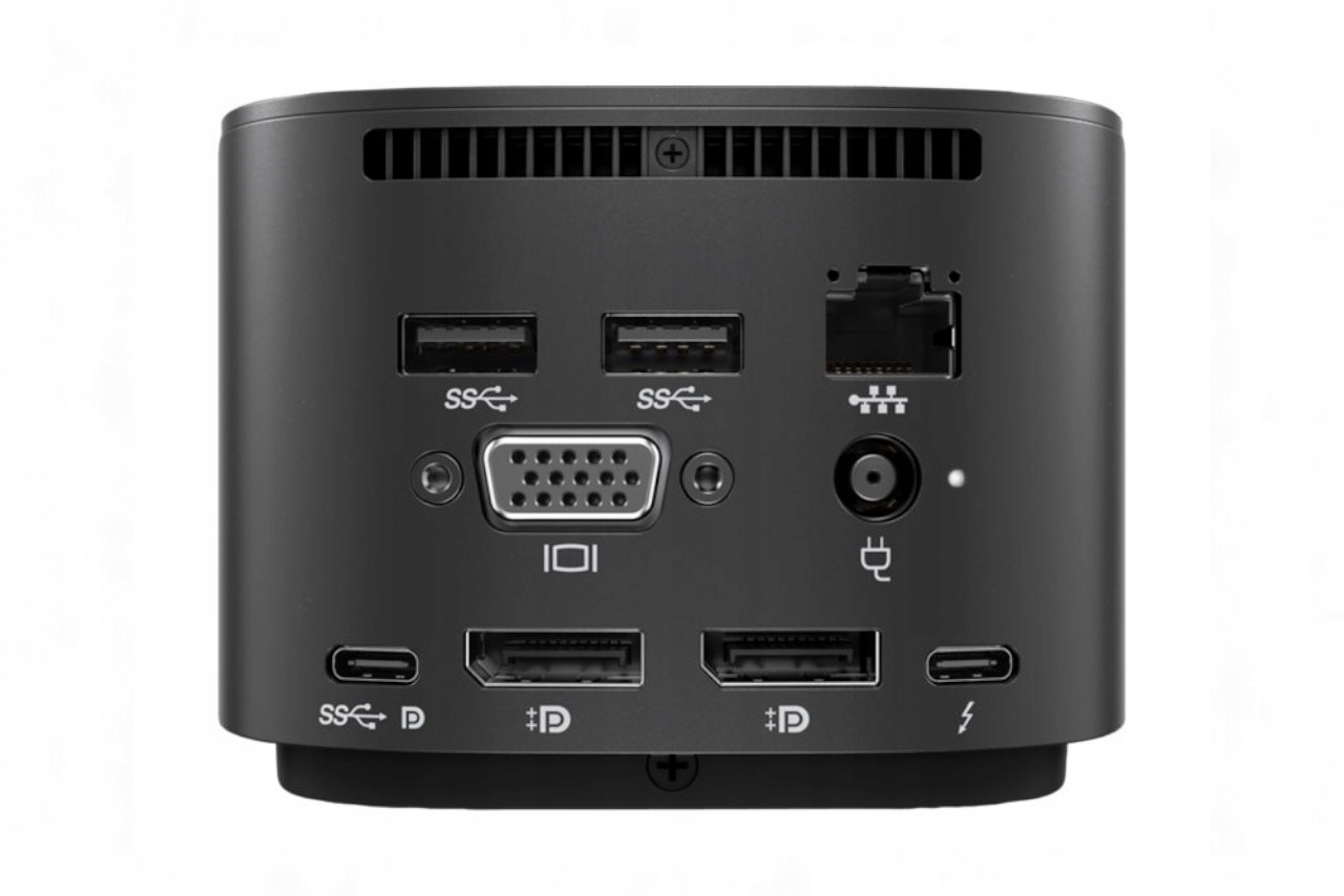 HP Thunderbolt Dock 120W G2 - Док -станція, реплікатор порту, призначена для ноутбуків HP, але також працює без будь -яких проблем з більшістю ноутбуків та операційних систем, таких як ОС Windows, Mac або Chrome. Забезпечує підтримку багатьох 4K дисплеїв, оптимізовану зарядку одним кабелем, багато портів розширення та розширених функцій управління мережею. Завдяки стикувальній станції можна з'єднати різні периферійні пристрої, без необхідності від'єднати їх усіх під час перевезення обладнання. Станція забезпечує швидкий доступ до швидкої передачі даних, UHD -дисплея та потужності 65 Вт для Thunderbolt ™ та USB -C -C та чіпсетів Intel Thunderbolt ™ 3, що дозволяє надсилати велику кількість даних на 40 ГБ/с, а підтримка до 4 4 -х дисплеїв UHD. connectors: