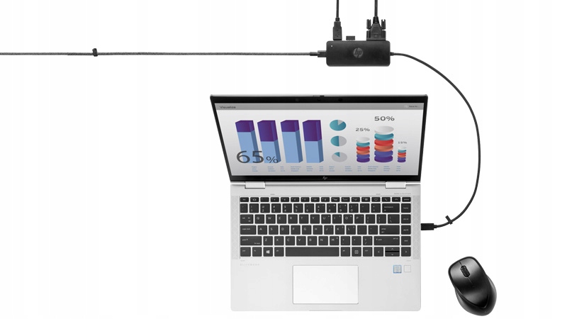 HP USB типу C Type C G2 концентратор маточини має загалом 5 різних портів, два порти USB 3,0, USB-C, HDMI та VGA. Він також був розроблений таким чином, щоб бути сумісним з усіма типами пристроїв, які можна підключити за допомогою типу С і, які підтримують усі необхідні протоколи передачі даних. За допомогою концентратора ви зможете надіслати зображення з одного пристрою на інший, а також завантажувати не тільки ноутбук, але й інші підключені пристрої.