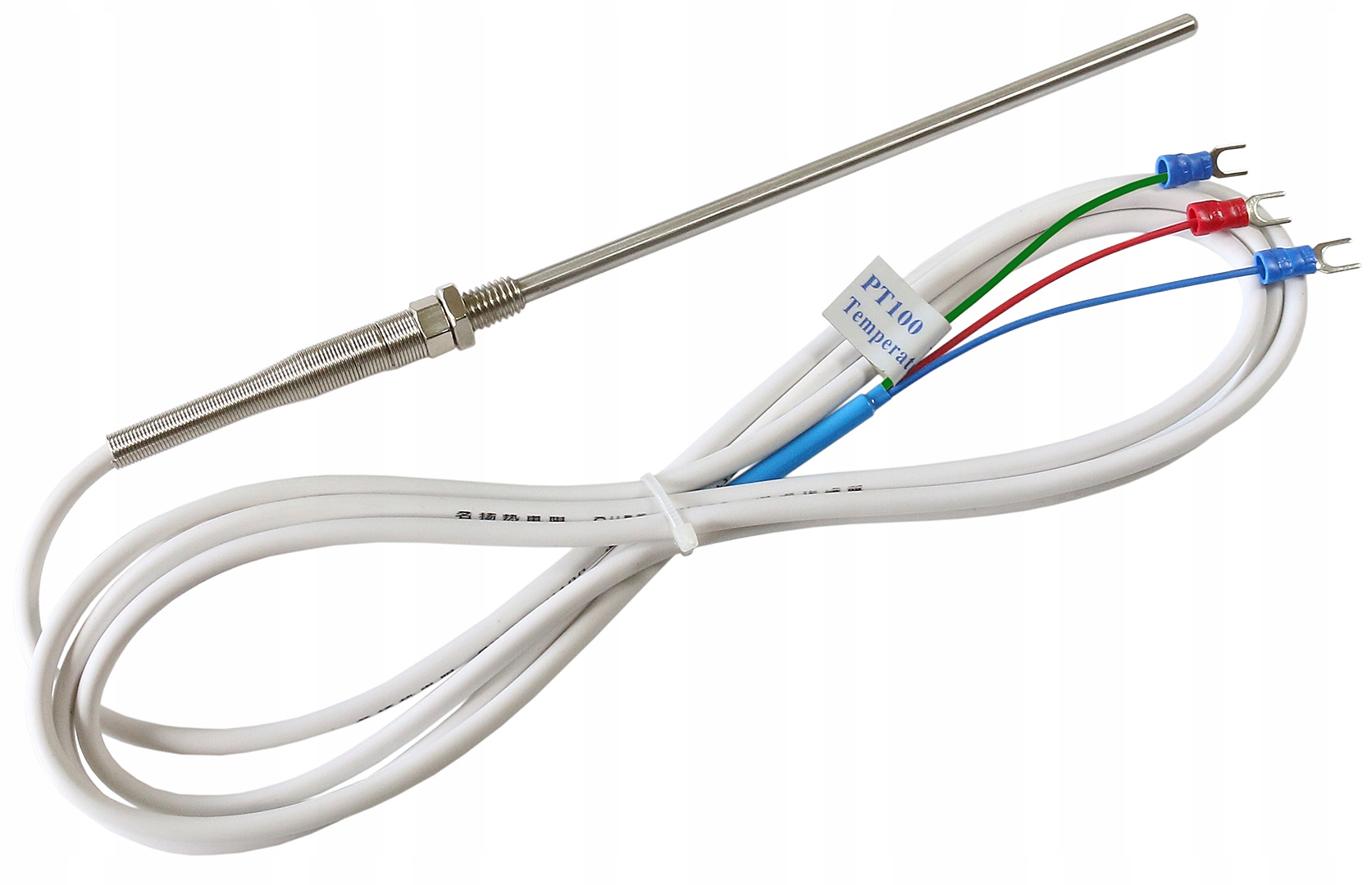 Датчик температури PT100 розміщено всередині кришки з нержавіючої сталі з різьбленням M8 і кабелем довжиною 2 м.