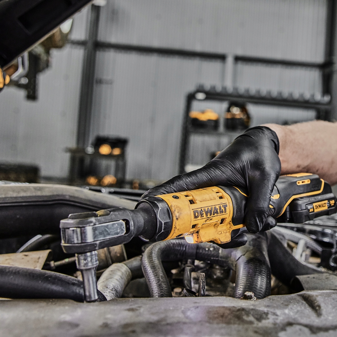 Він може правильно закручувати гвинти підвищити тиск, наприклад, під час роботи в майстерні автомобіль. Це добре видно втомлені компресори та нескінченні метрів проводів, об які легко спіткнутися, подача тиску на клавіші пневматичний. Акумуляторна тріскачка 1/4″ DeWALT DCF504 дозволяє відмовитися від використання компресорів живлення від будь-якого акумулятора Серія Li-Ion 12V XR від DeWALT. Викрутка має безщітковий двигун, що забезпечує максимальну крутний момент 54 Нм і швидкість швидкість обертання 250 об/хв. З цими параметри, які знайде брязкіт батареї універсальне використання серед механіків і робітників з обслуговування та інші фахівці з ремонту навколо світ. Завдяки плоскому профілю головки набагато легше досягти важкого наявність шурупів і додатковий комфорт роботи покращений світлодіодним діодом, що освітлює робочу зону. Інтелектуальний тригер полегшує роботу контроль швидкості обертання, шляхом вибору відповідних робочих параметрів. Напрямок повороту міняємо як у стандартному ручному тріскачкою, просто поверніть ручку на голові. Захисна гума найвищої якості покращує зчеплення навіть у мокрому та закритому стані змастіть руки для ще більшого комфорту більш надійна робота тріскачки. б/в акумуляторний блок живлення підвищує ергономічність і мобільність оператора на робочому місці, без зайвих пневматичні труби під ногами.