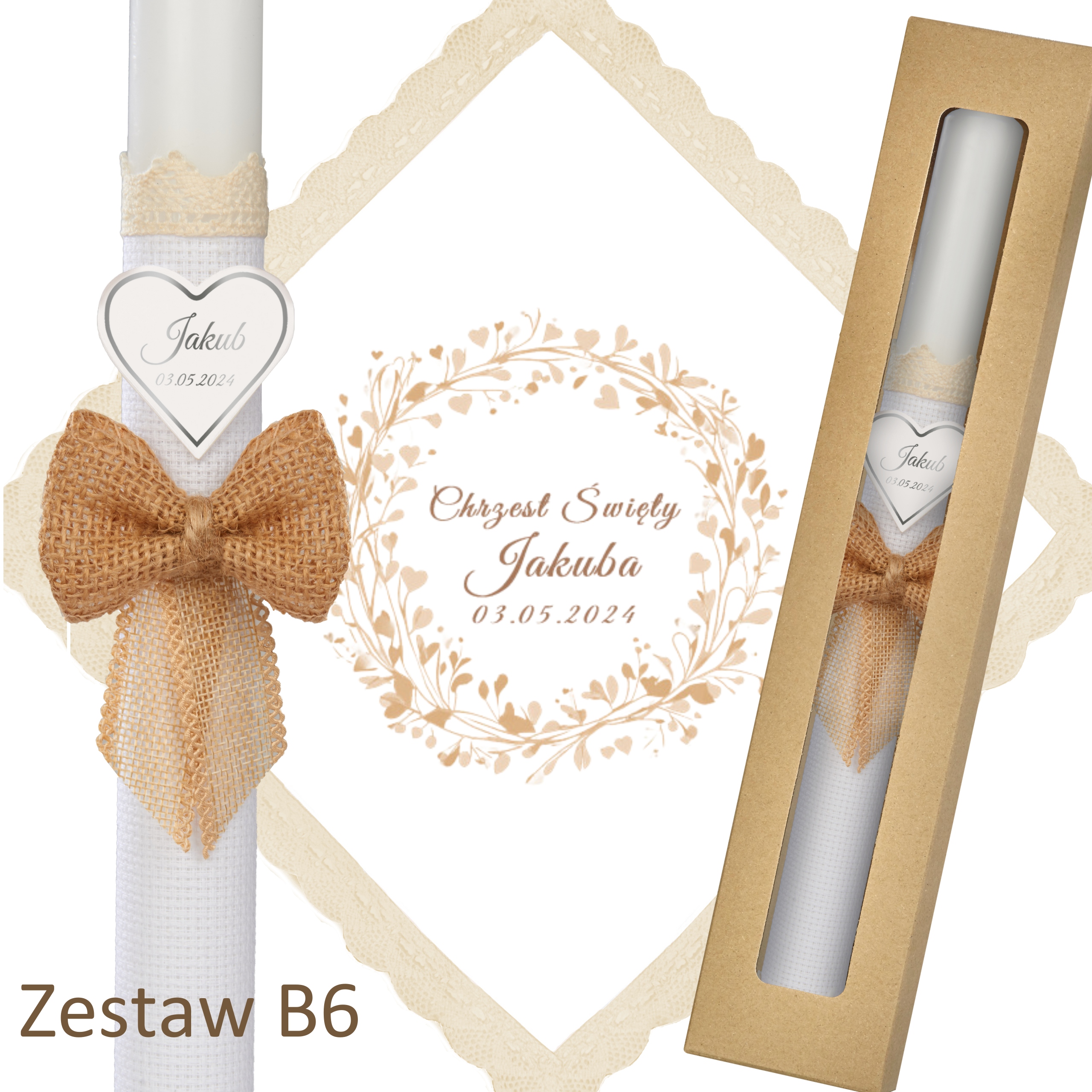 Пропонуємо Вашій увазі неординарний комплект в еко стилі. Набір дуже елегантний і водночас випромінює тепло. Це буде чудовий, емоційний сувенір до цього найголовнішого Таїнства.