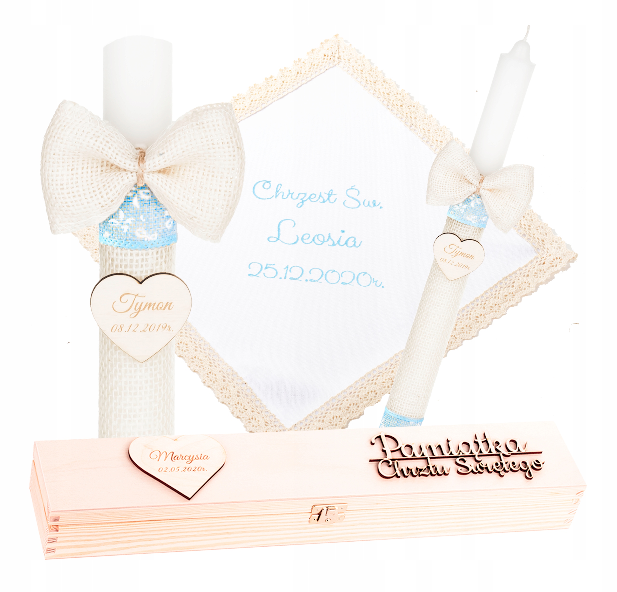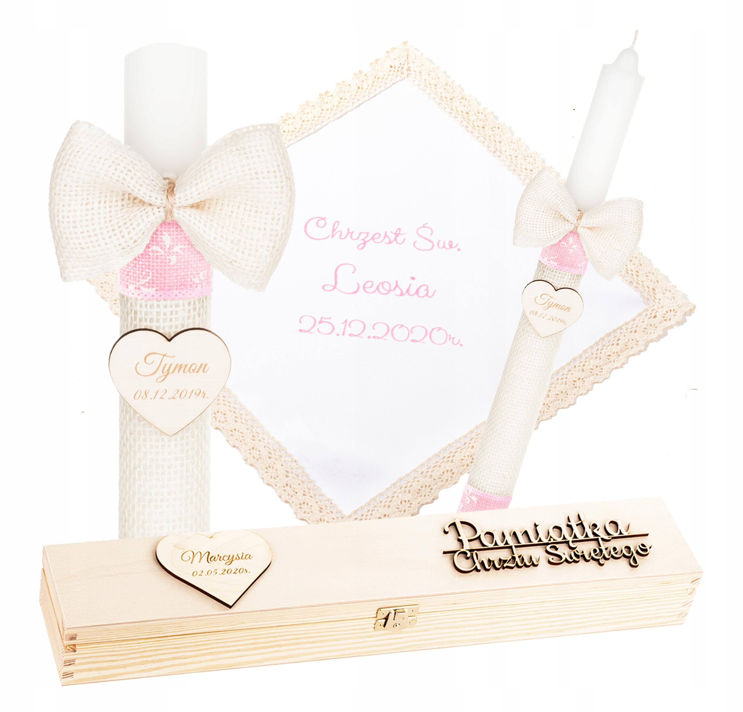 - лазерне гравірування - на свічку кріпиться дерев'яна підвіска, на якій ми робимо гравіювання ім'я дитини та дата святкування . Для гравіювання ми використовуємо новітнє обладнання від світового лідера