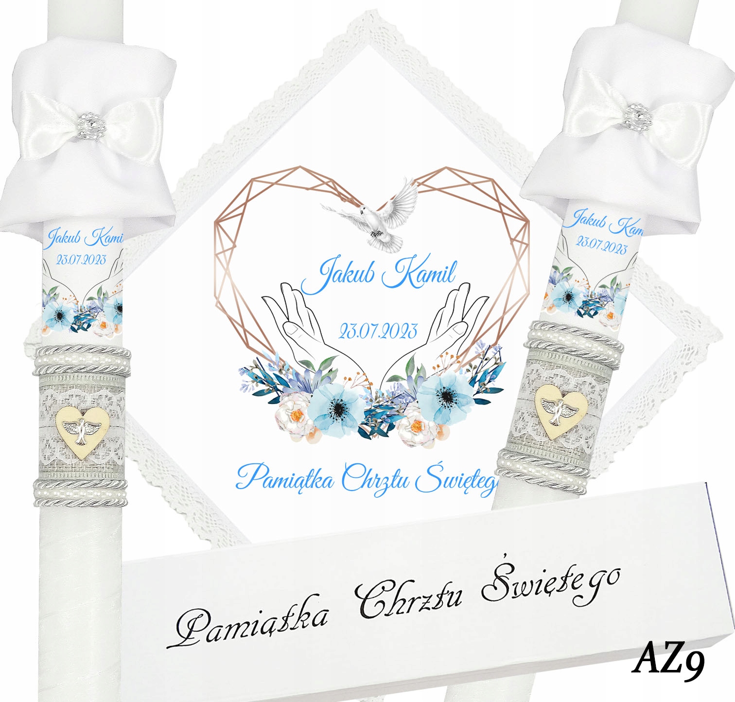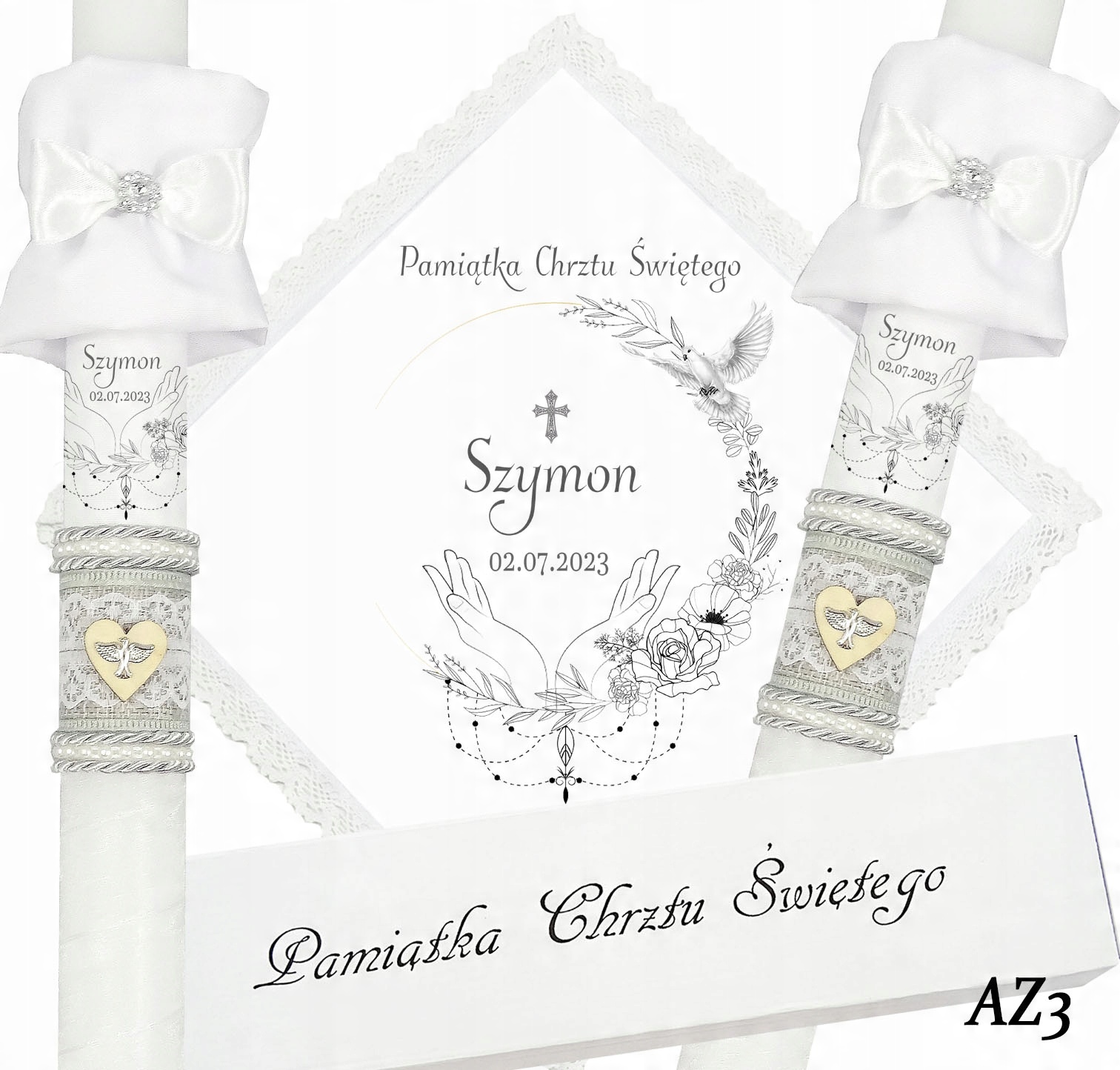 Представляємо надзвичайний набір з хрестильної ризи та свічки, створений з урочистим подія в житті кожної дитини. Халат виготовлений з білосніжного матеріалу та оброблений бавовняним мереживом, що надає йому елегантності та ніжності. Свічка декорована вручну і має принт з ім'ям дитини, що робить її унікальним і унікальним сувеніром. Свічка має срібну нитку, на її поверхні сіра джутова стрічка з мереживом і дерев'яне серце з срібною емблемою Святого Духа. Інша частина свічки обмотується білою шифоновою стрічкою. Все це упаковано в білу картонну коробку з написом «Сувенір на Святе Хрещення», також в комплект входить тканинна бонусна сумка. Цей унікальний набір із одягу та свічки неодмінно підкреслить церемонію хрещення та посилить емоції та спогади, пов’язані з цією особливою подією.