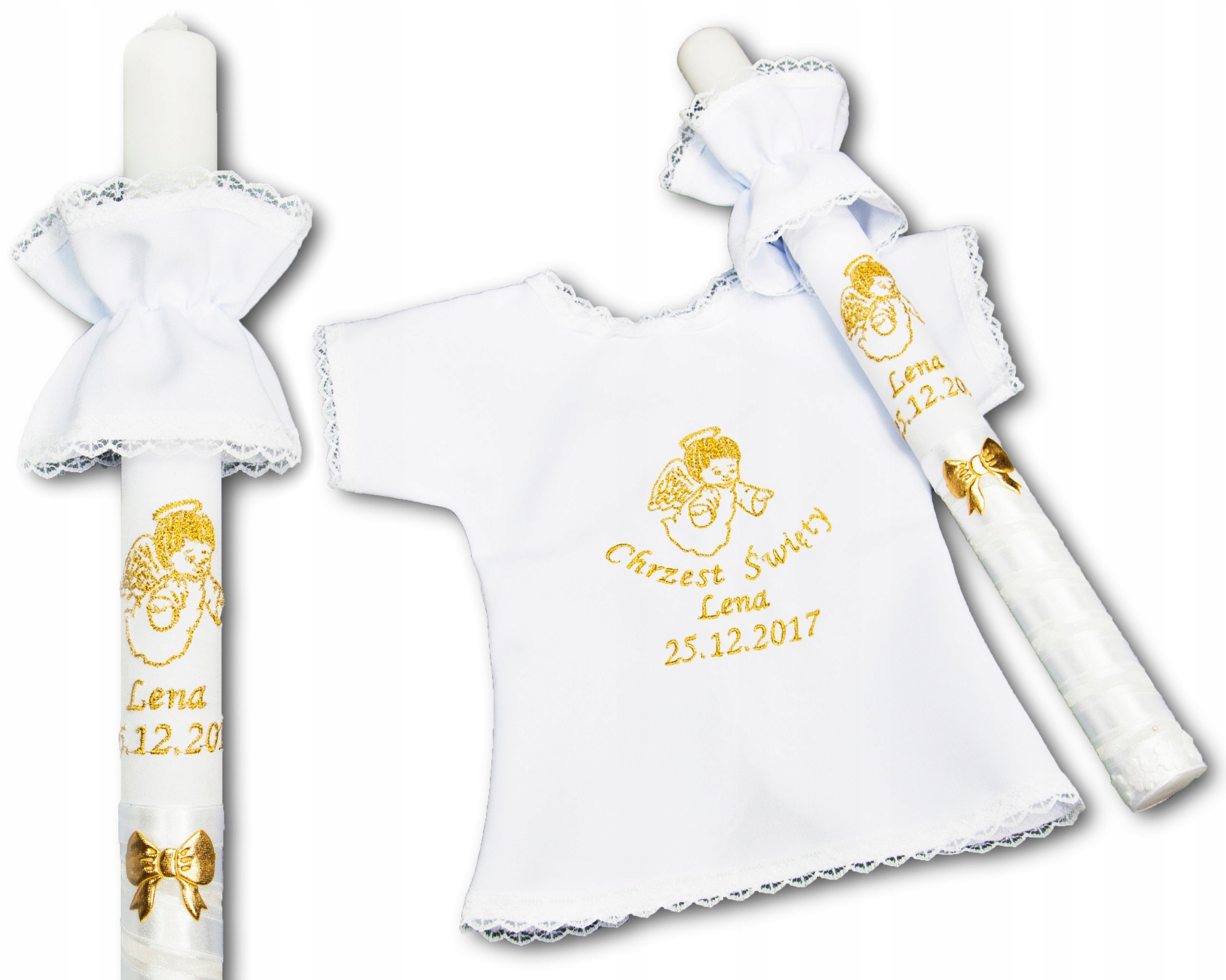 ХРЕЩЕННЯ - Хрещенський одяг і свічка з вишивкою з датою імені