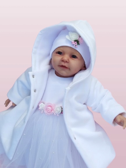 пальто в білому кольорі, пришиті трикотажною тканиною