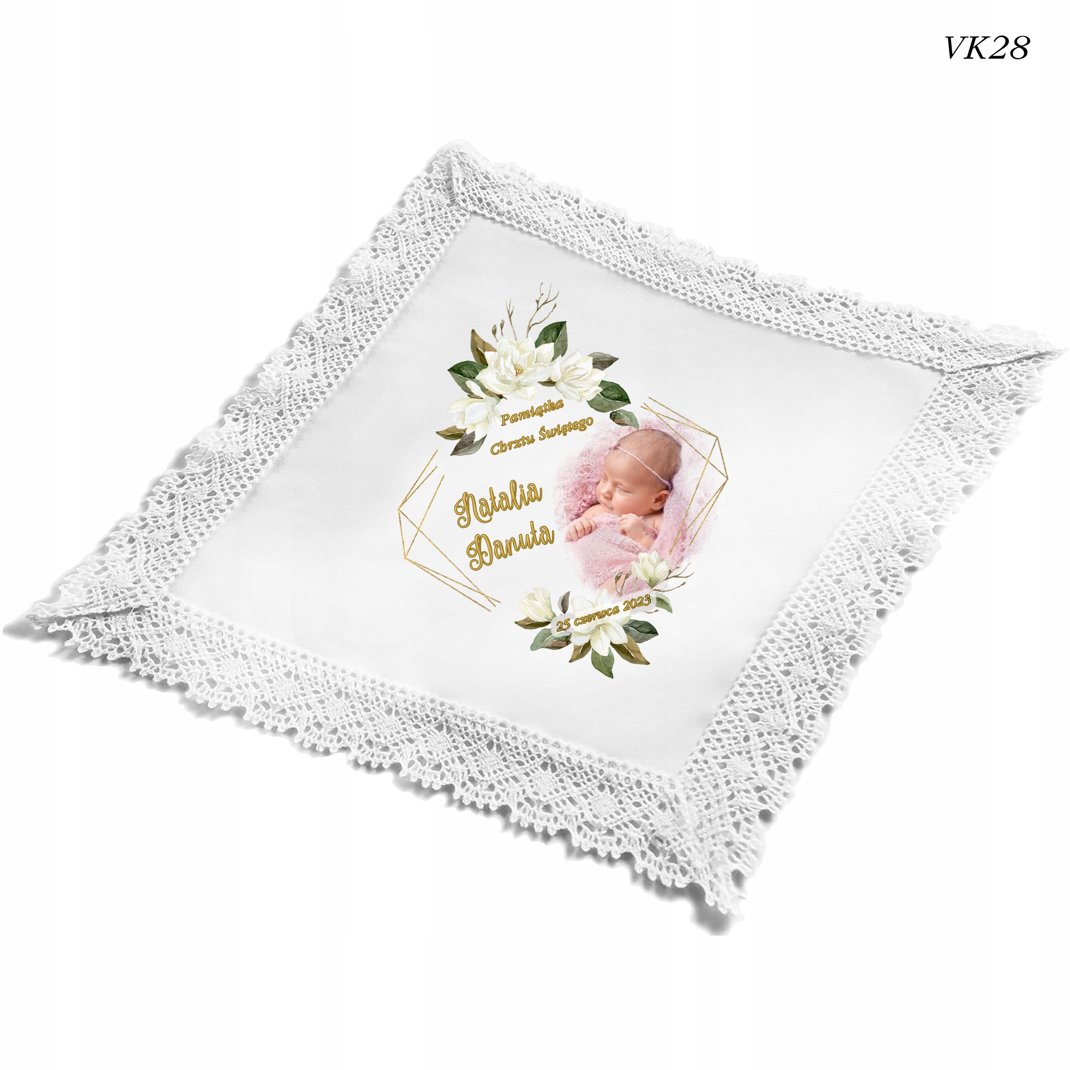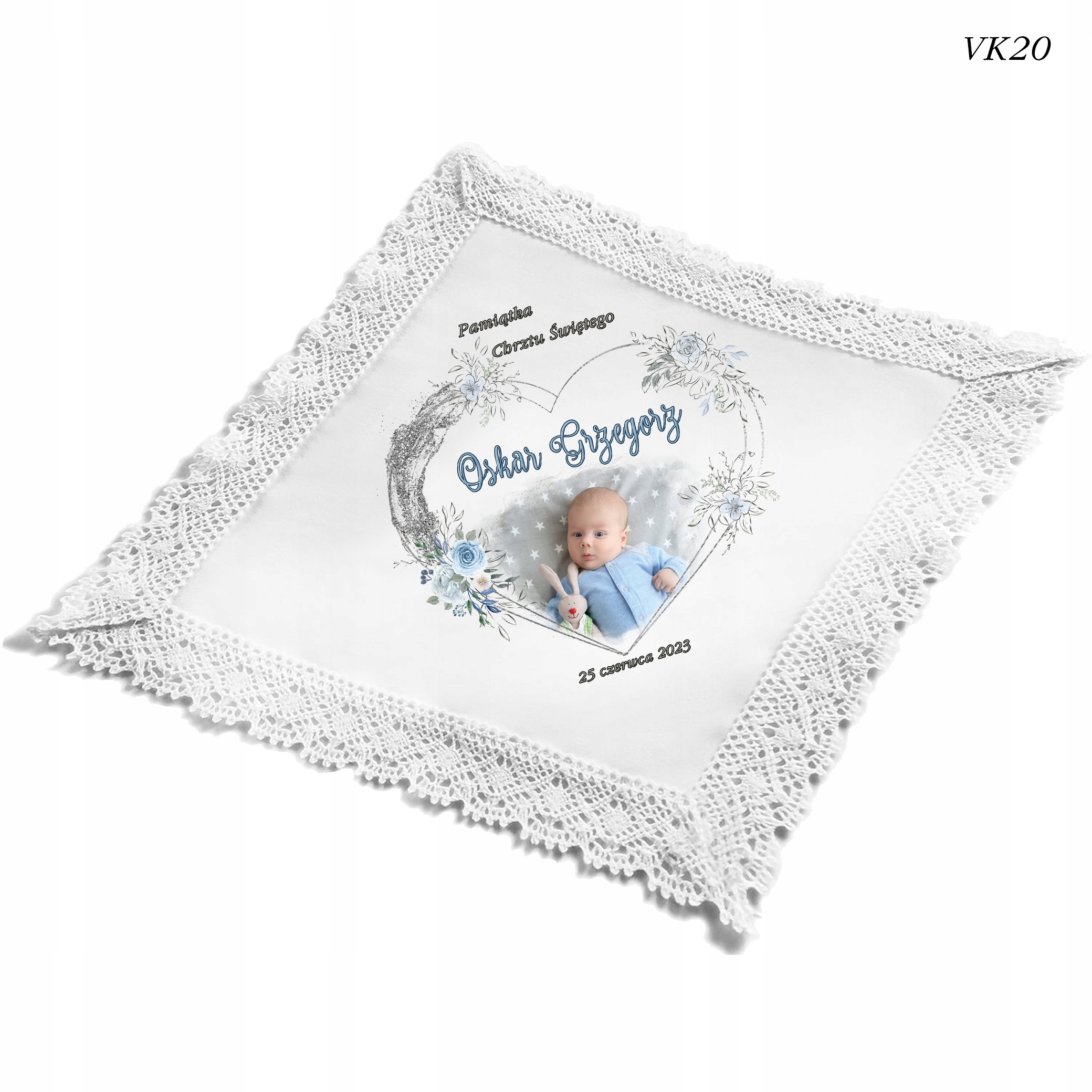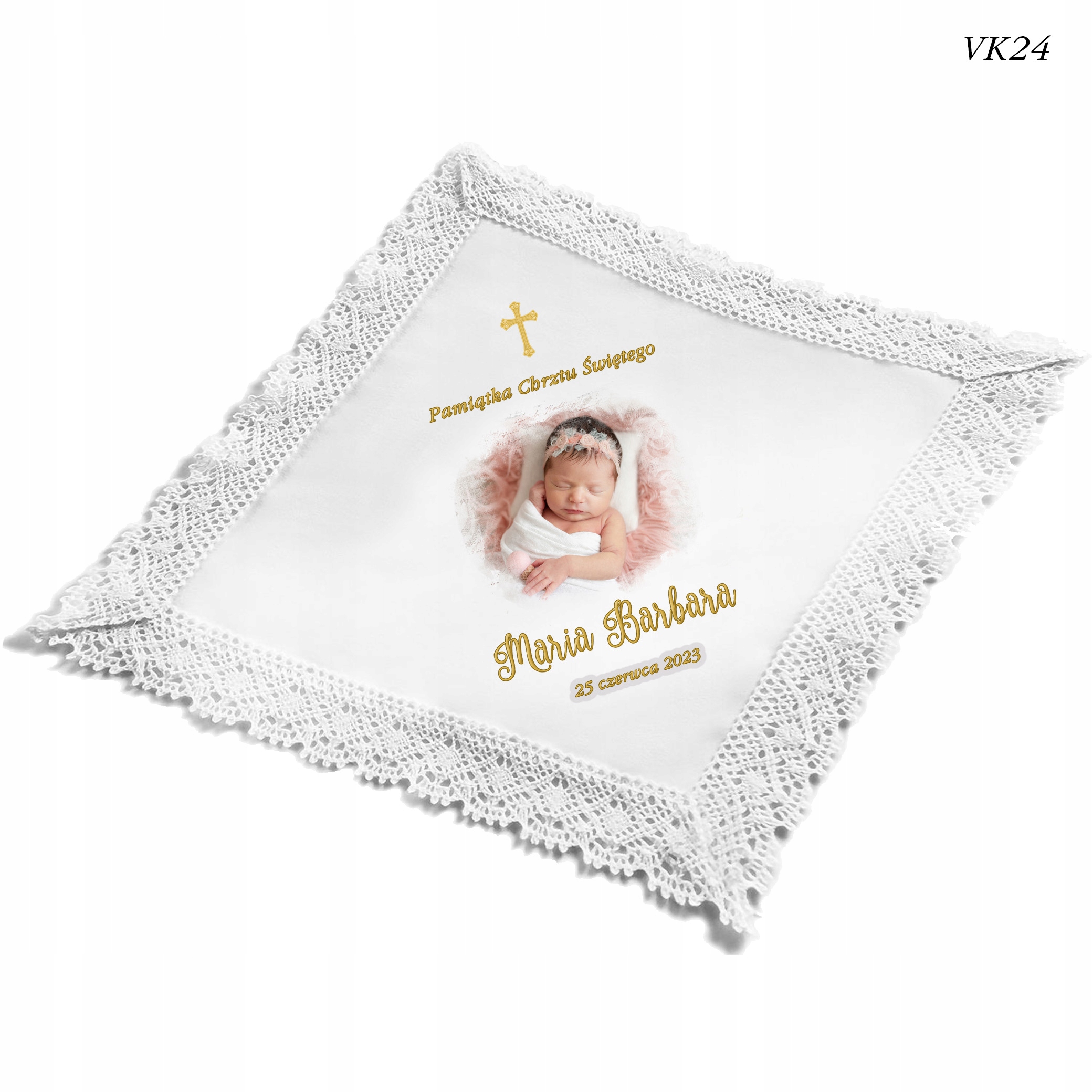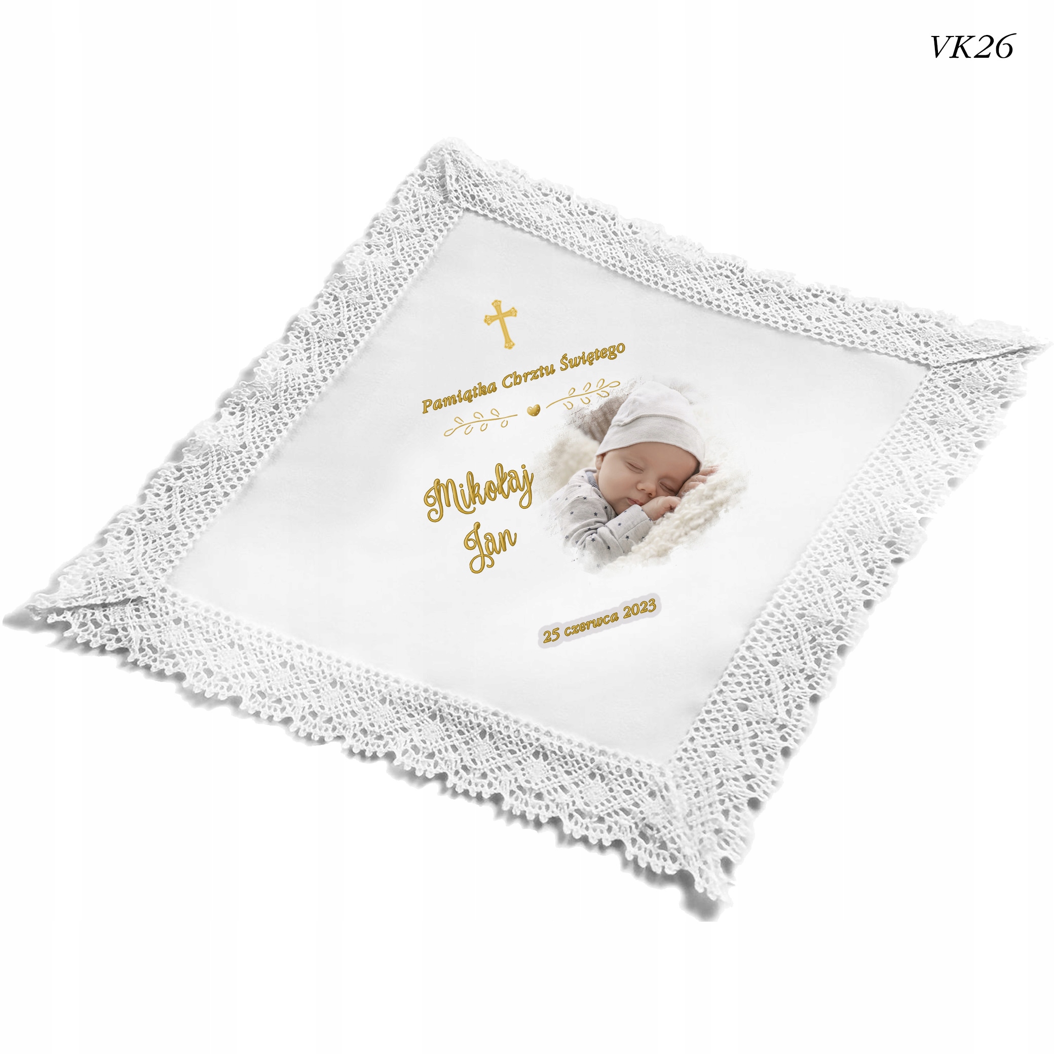 ХРЕСТИЛЬНИЙ ОДЯГ ІЗ ФОТОГРАФІЄЮ ВАШОЇ ДИТИНИ В ЕКОСТІЛІ З БАВОВНЯНИМ МЕРЕЖИВОМ.