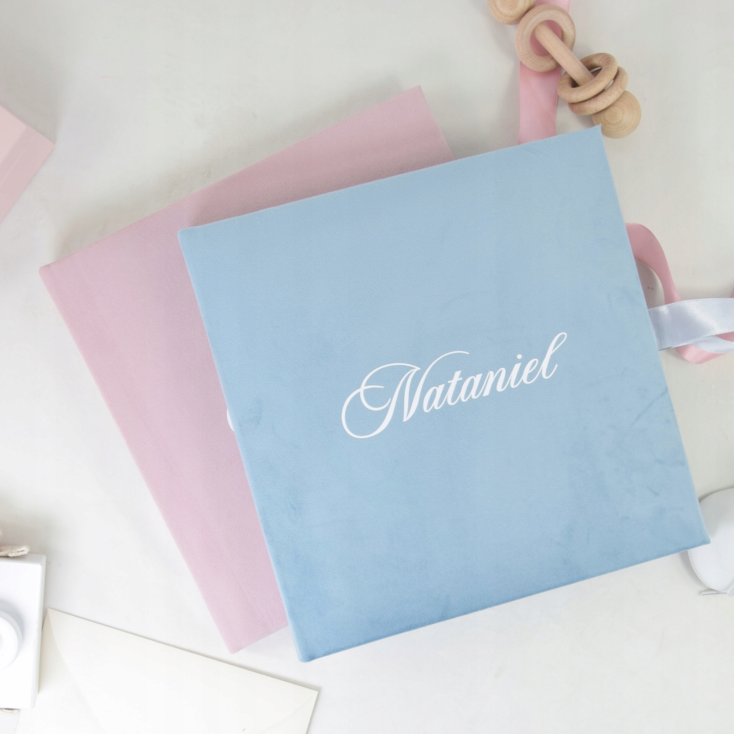 - Personalization: Child's name on the album, engraving on the box
