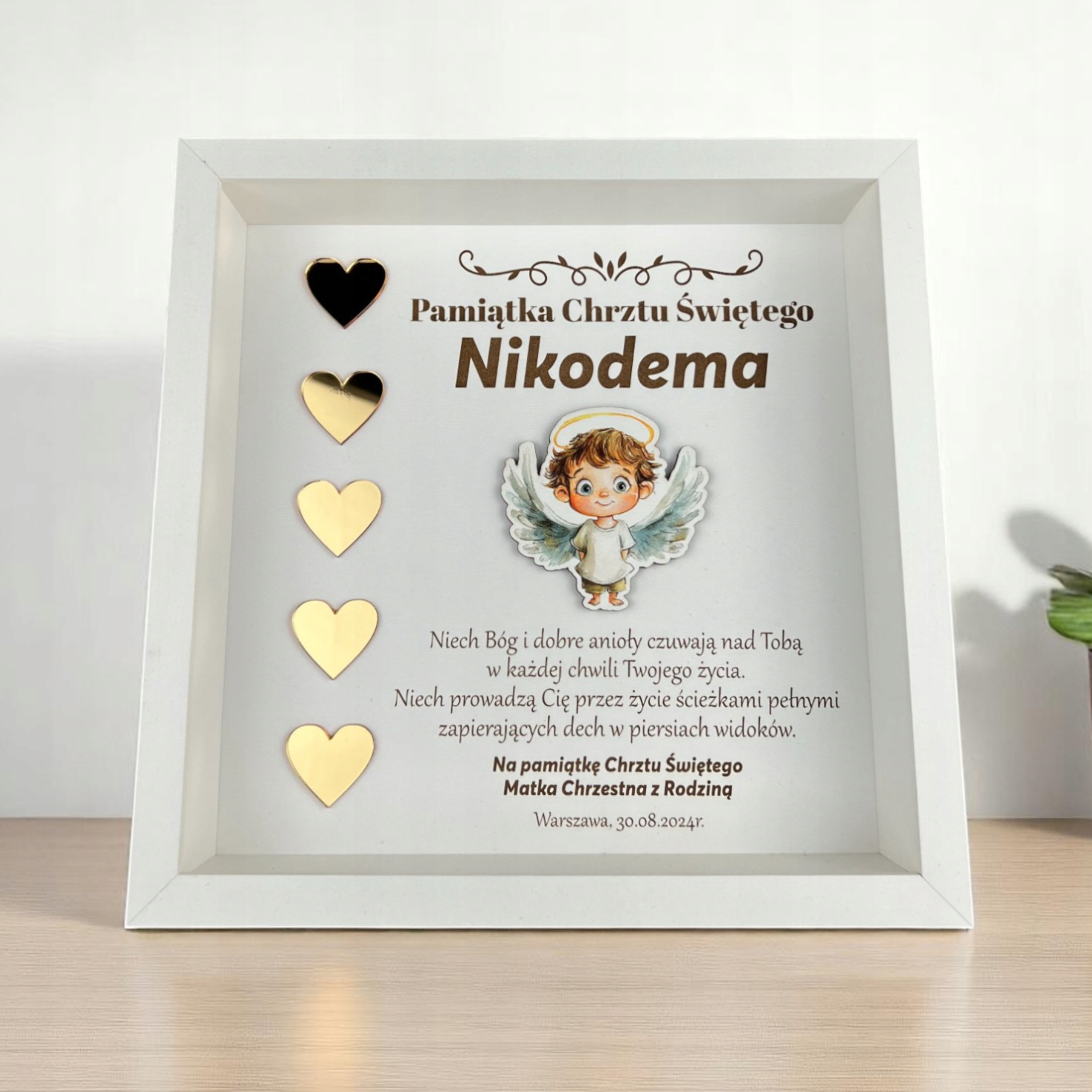 Дайте унікальний та унікальний подарунок з нагоди хрещення. Наш персоналізований кадр з гравіруванням - чудовий сувенір цього важливого дня.