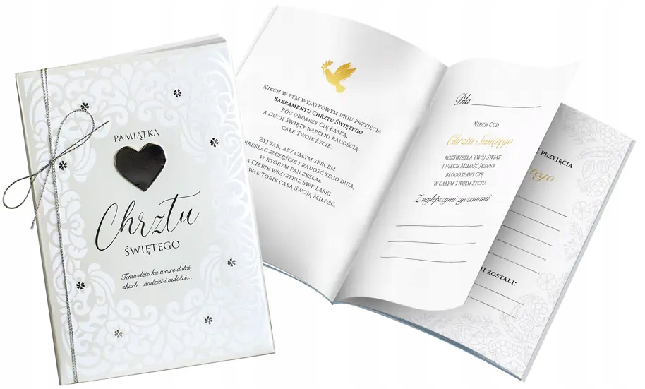 PMB Premium book Pearl and golden foil and accessories such as pearls and diamonds, with a colorful interior, beautiful graphics and quotes as well as wishes and a place for personal Посвята. Спеціальний невеликий конверт вставляється на внутрішню частину обкладинки, в якій ви можете перенести подарункову карту або банкноту. Книга Kukartka PMB Premium - це ідеальний подарунок для особливого випадку, що, безсумнівно, є святим хрещенням.
