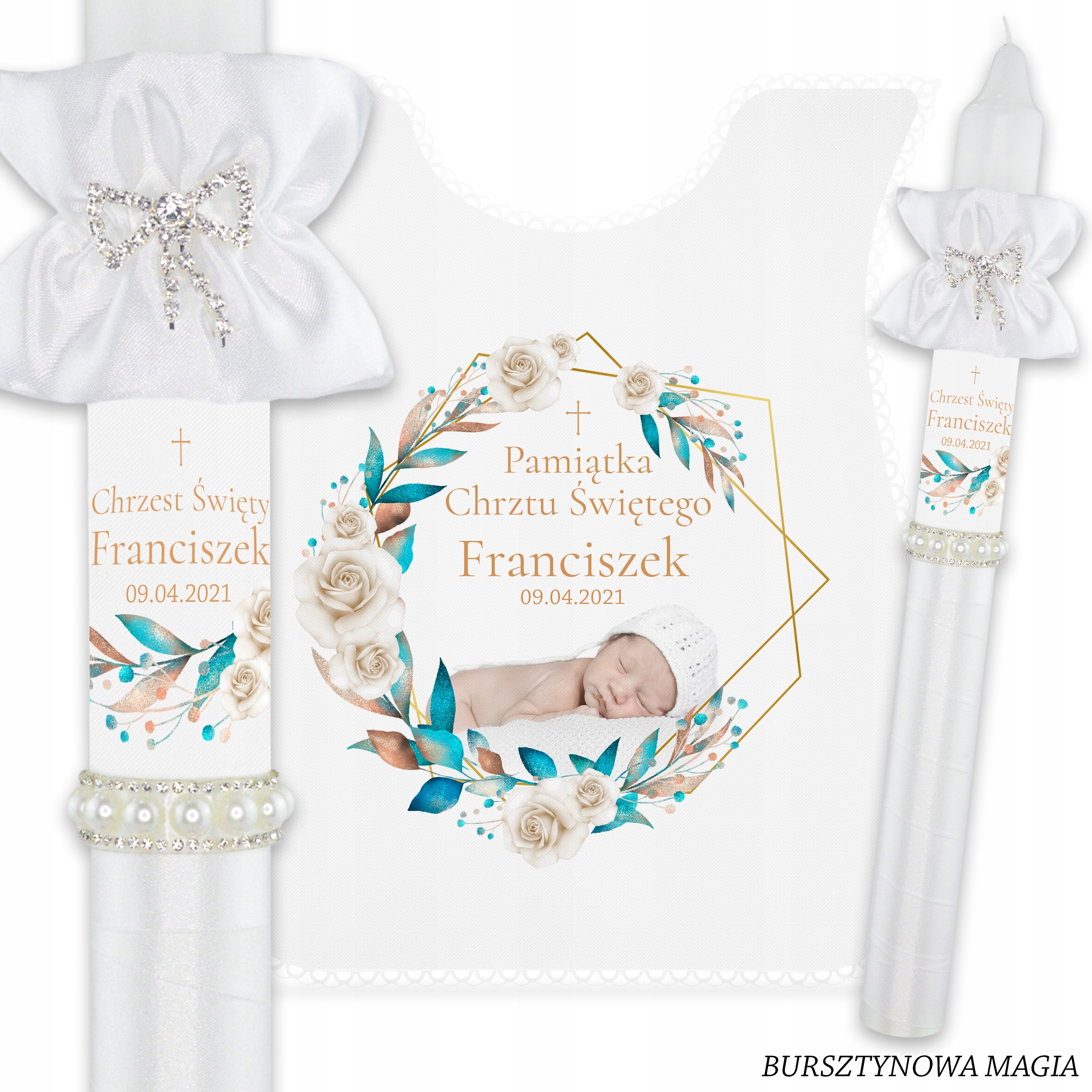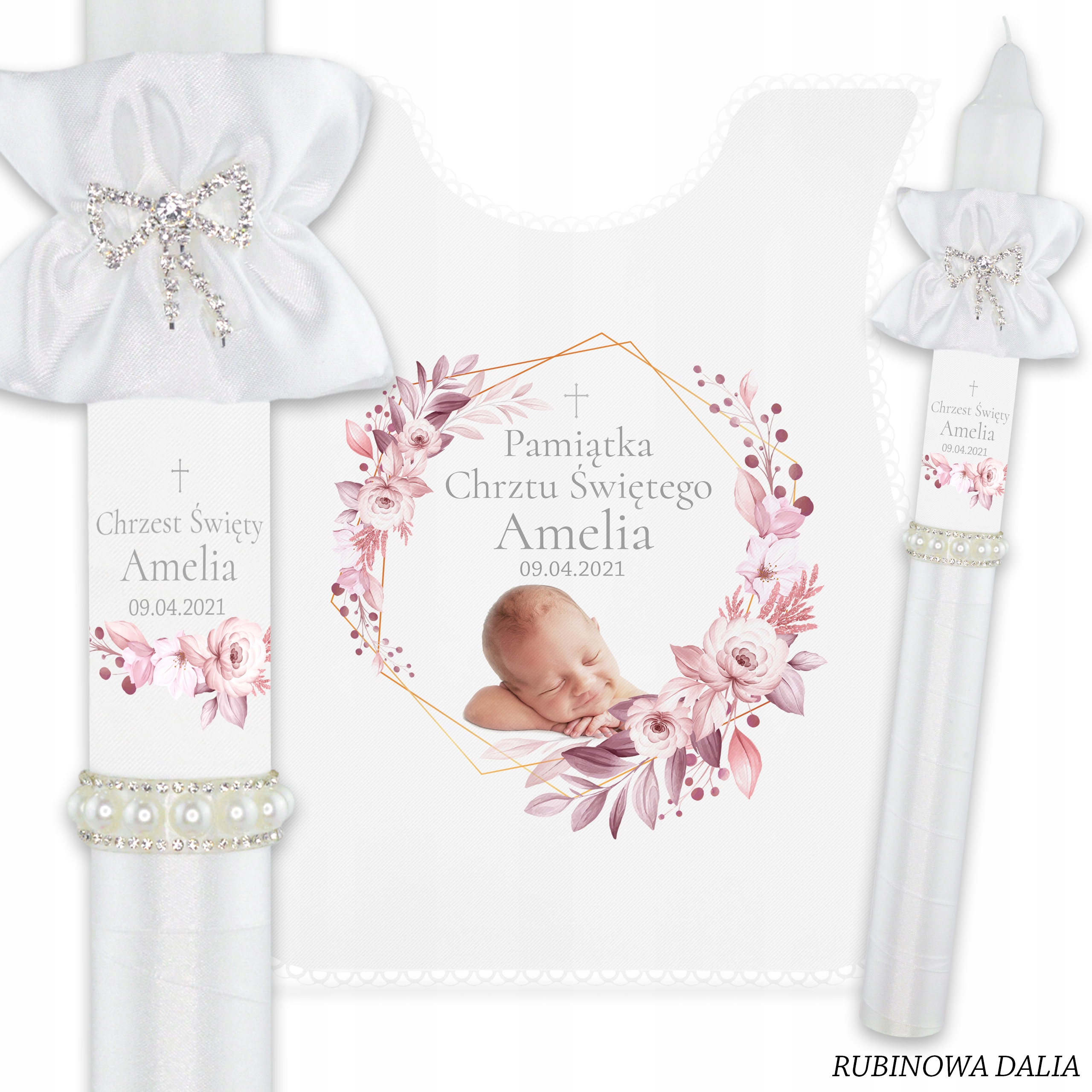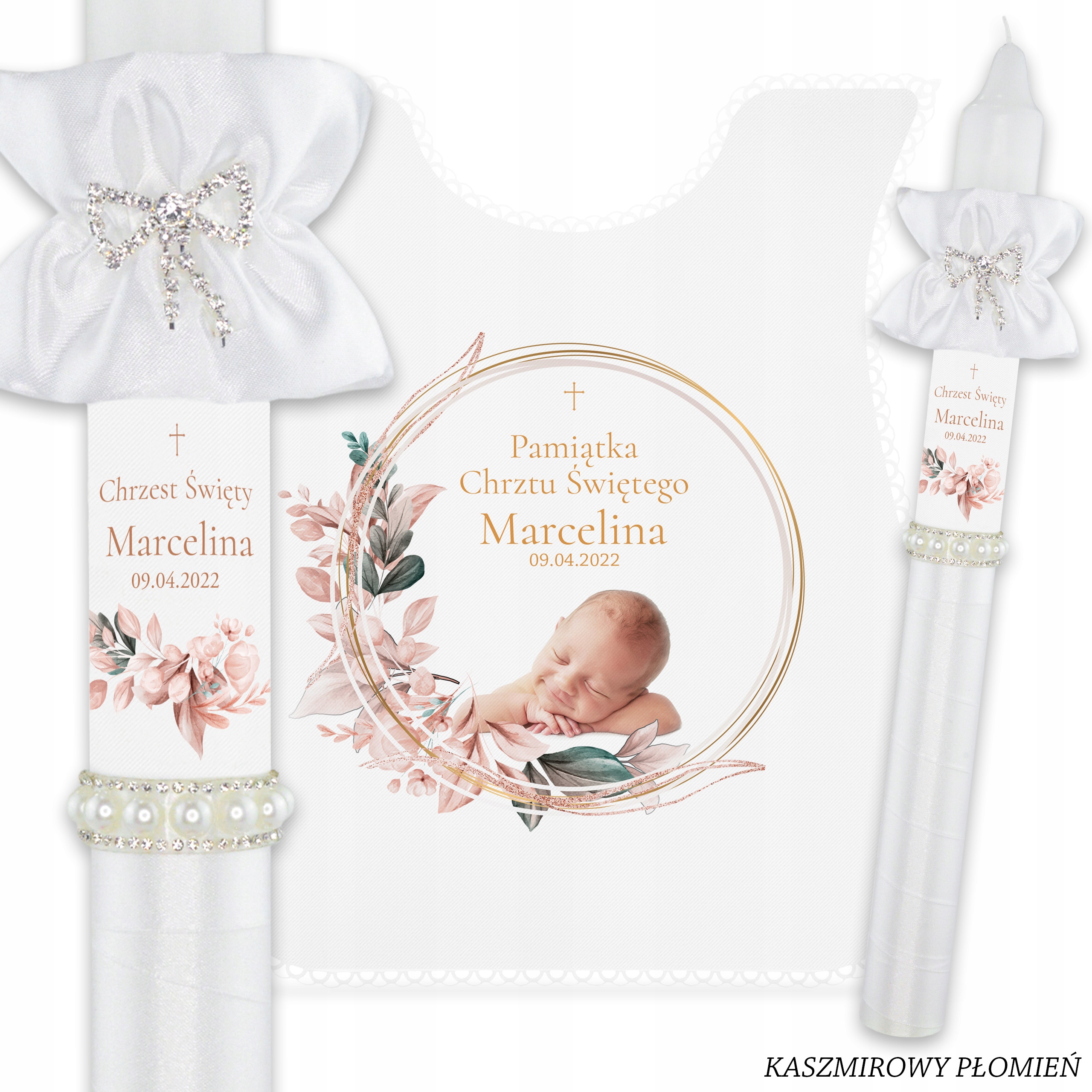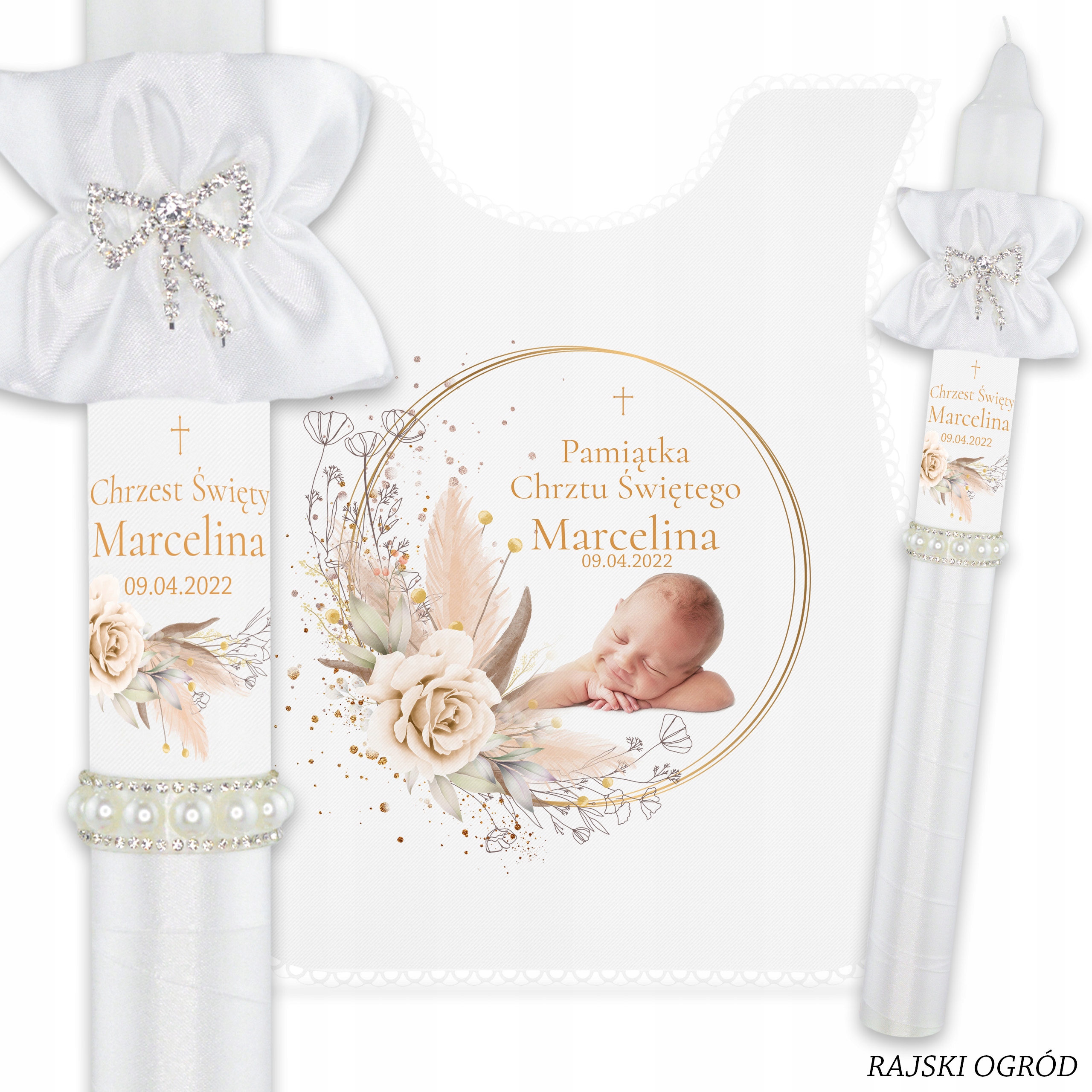 Свічка + халат ізфотографією вашої дитинидля хрещення з нашої останньої колекціїBOHO, яка поєднує елегантність із традиціями.