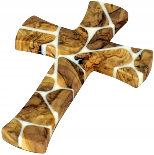 Хрест 15 см оливкова деревина та біла смола – вироби ручної роботи, прикраса, подарунок