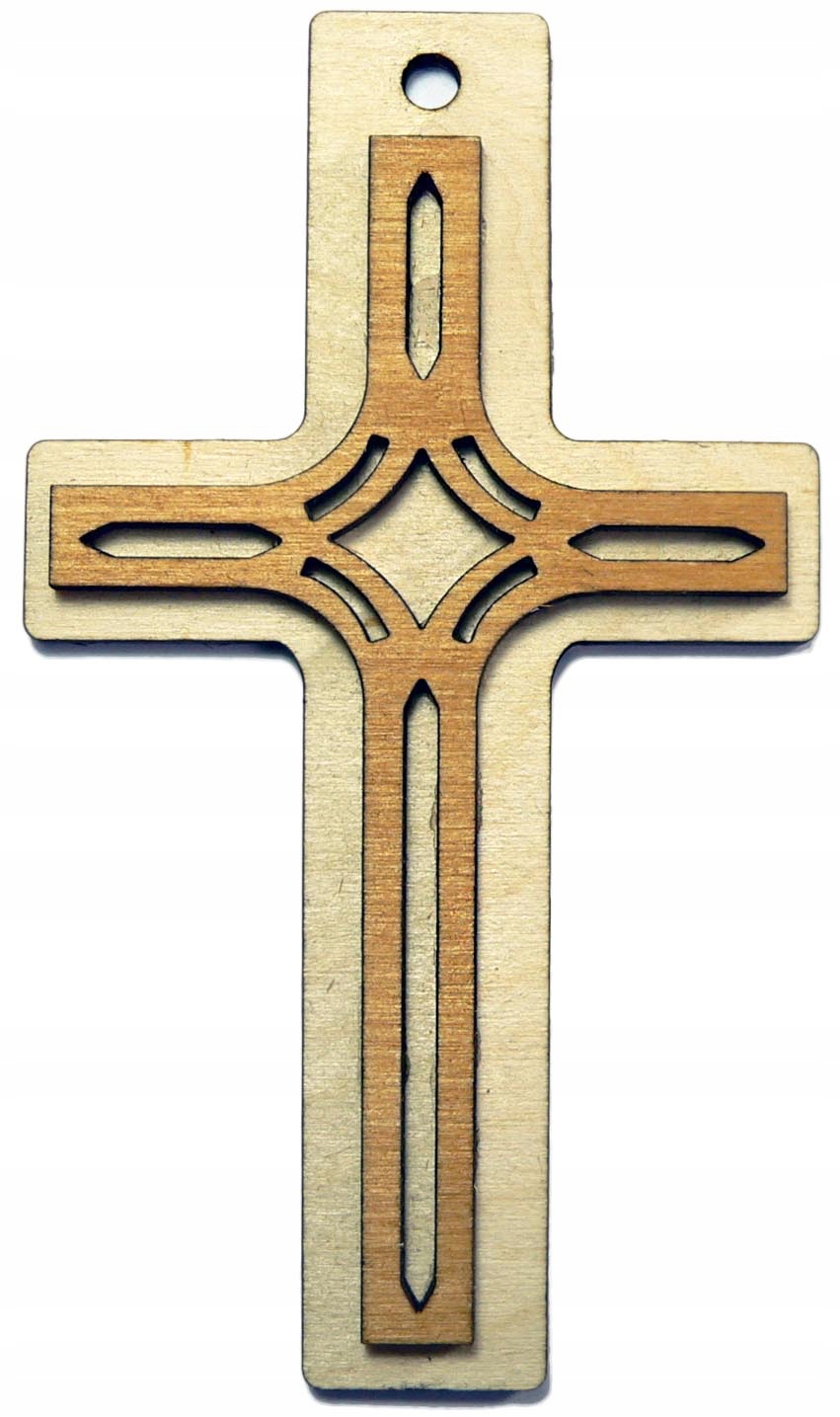 Хрест виготовлений повністю з фанери. Внутрішній хрестик, вирізаний лазером. Темні елементи покриті якісною морилкою. Колір: натуральний і морилка (морилка горіх). Доступний у двох версіях:
