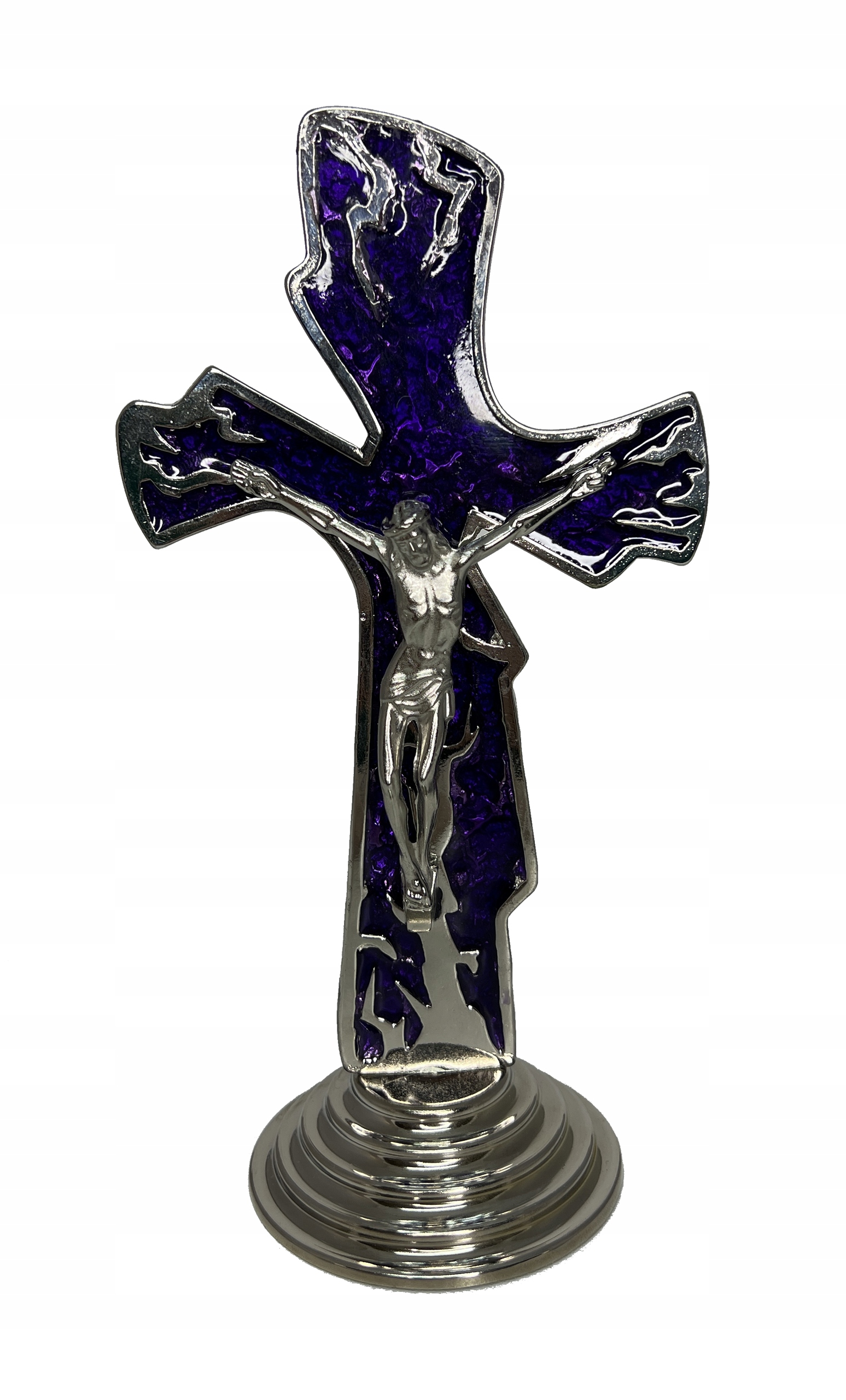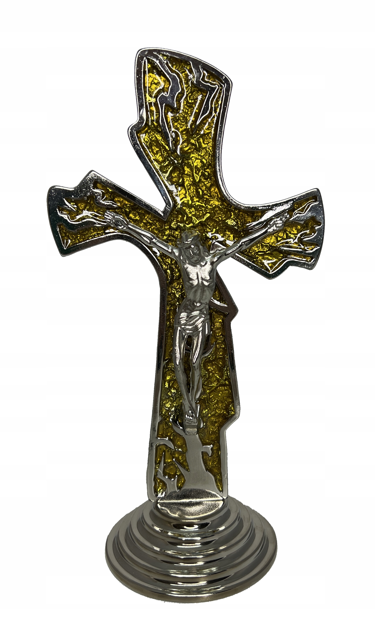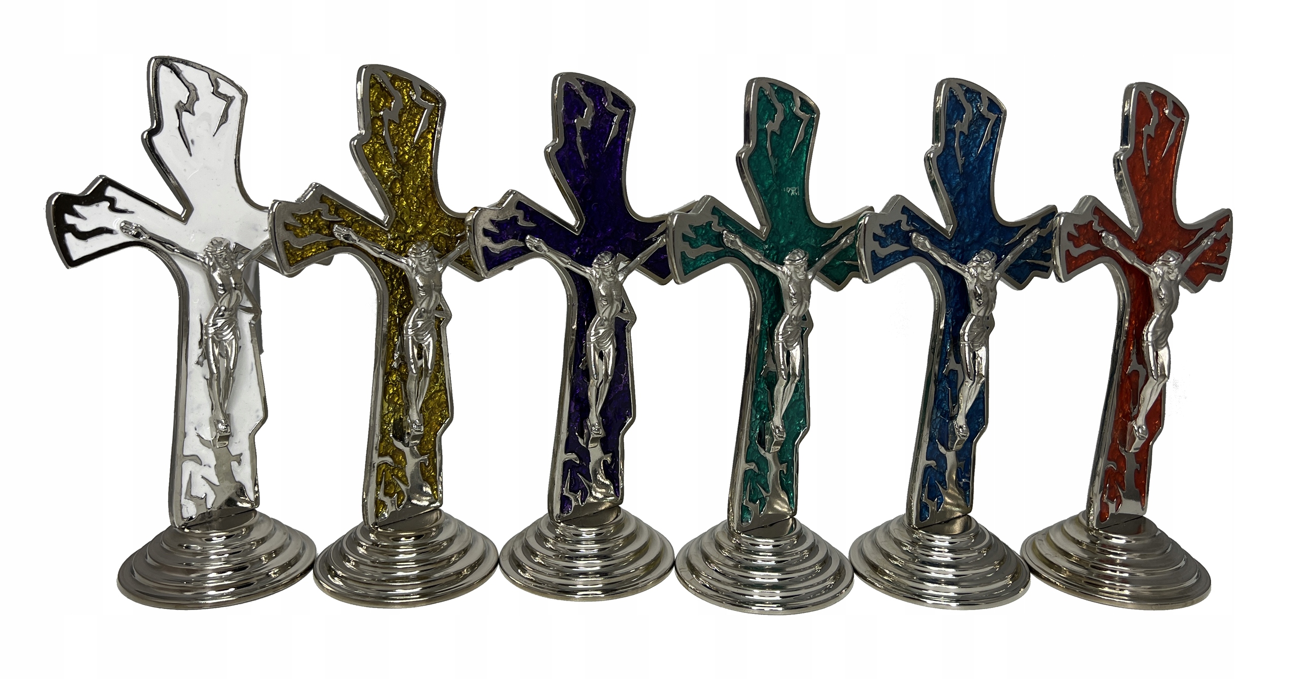 Металевий хрест декоративний стоячий сакральний дизайн барвиста смола