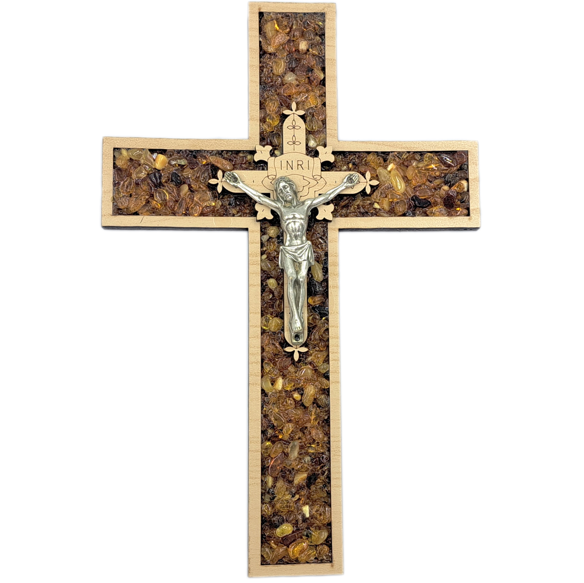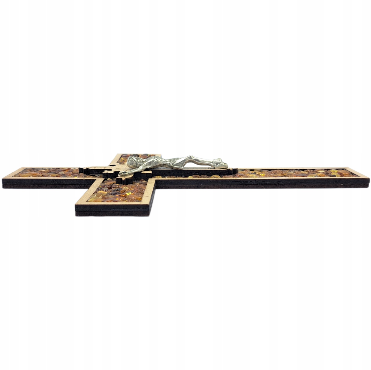 ХРЕСТ ПІДВІСНИЙ, ФАНЕРА + БУРШТИН, 20см