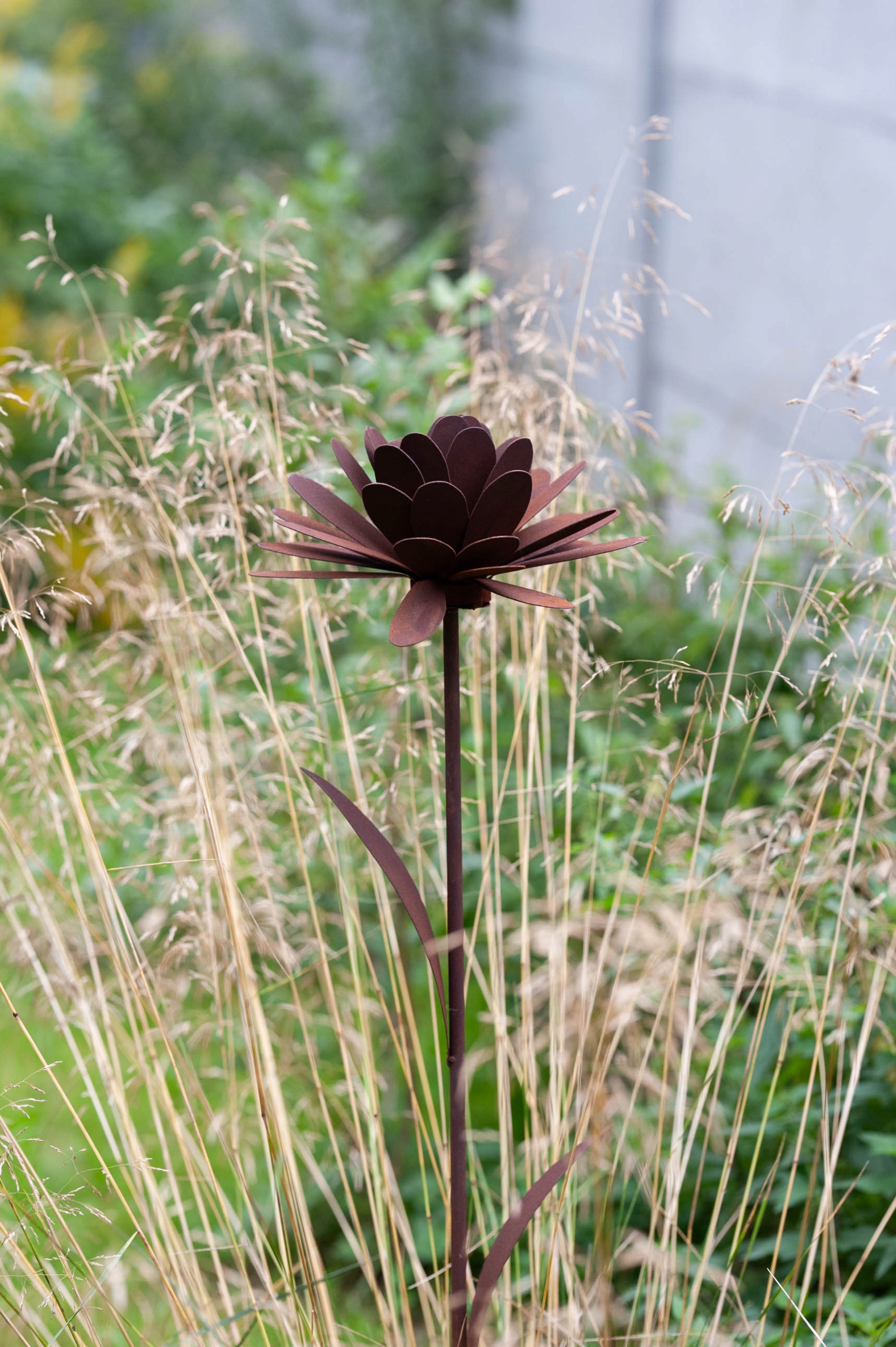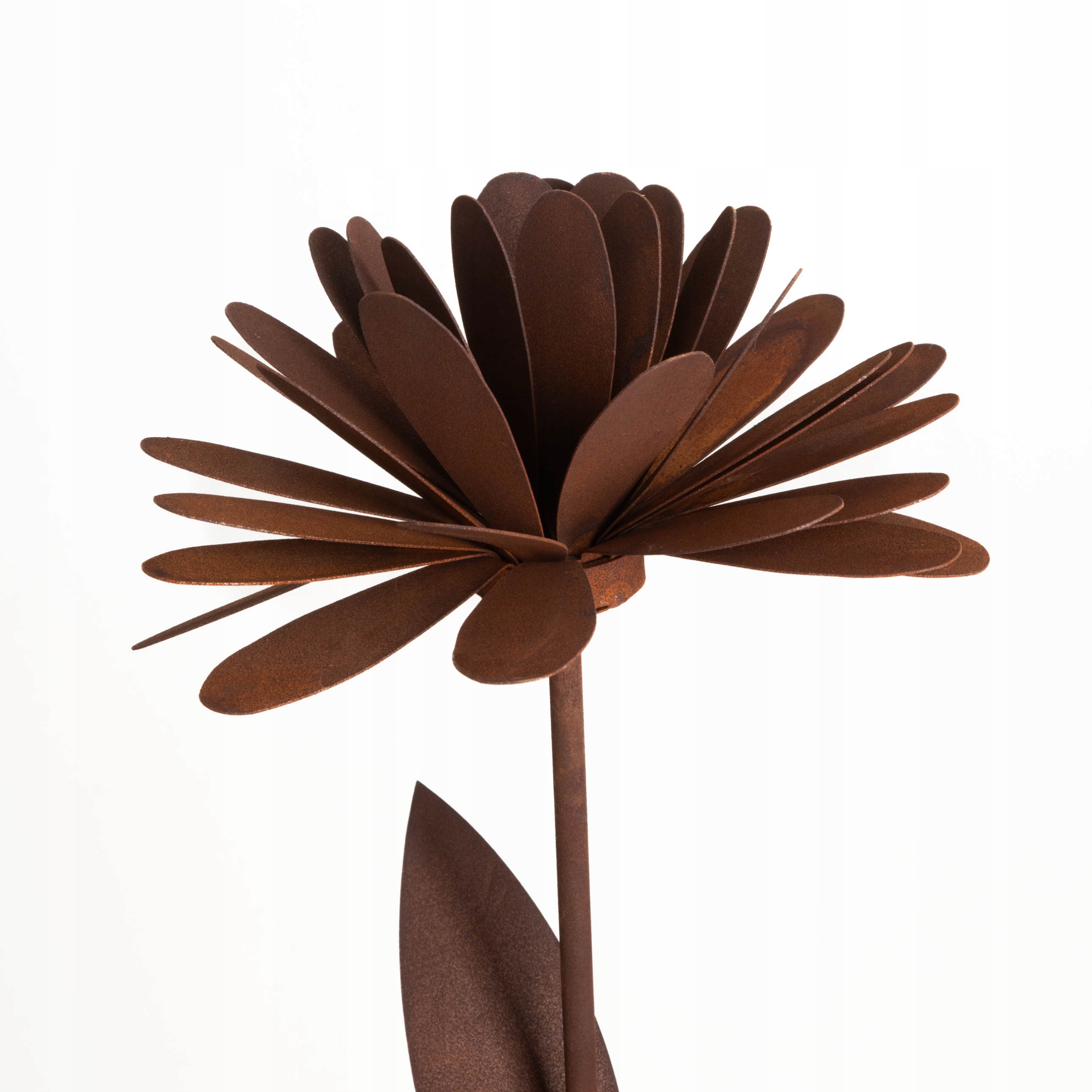Головним елементом цієї прикраси є красива квітка шириною 26 см, яка вражає своїм реалістичним виглядом. Виготовлена зі сталі виняткової якості, квітка виділяється не лише своєю формою, але й унікальною обробкою. Поверхня квітки вкрита екологічним шаром іржі, природним чином утвореним під впливом погодних умов. Це сільське покриття надає всьому цьому надзвичайного характеру, посилаючись на природну красу та процеси, що відбуваються в природі.