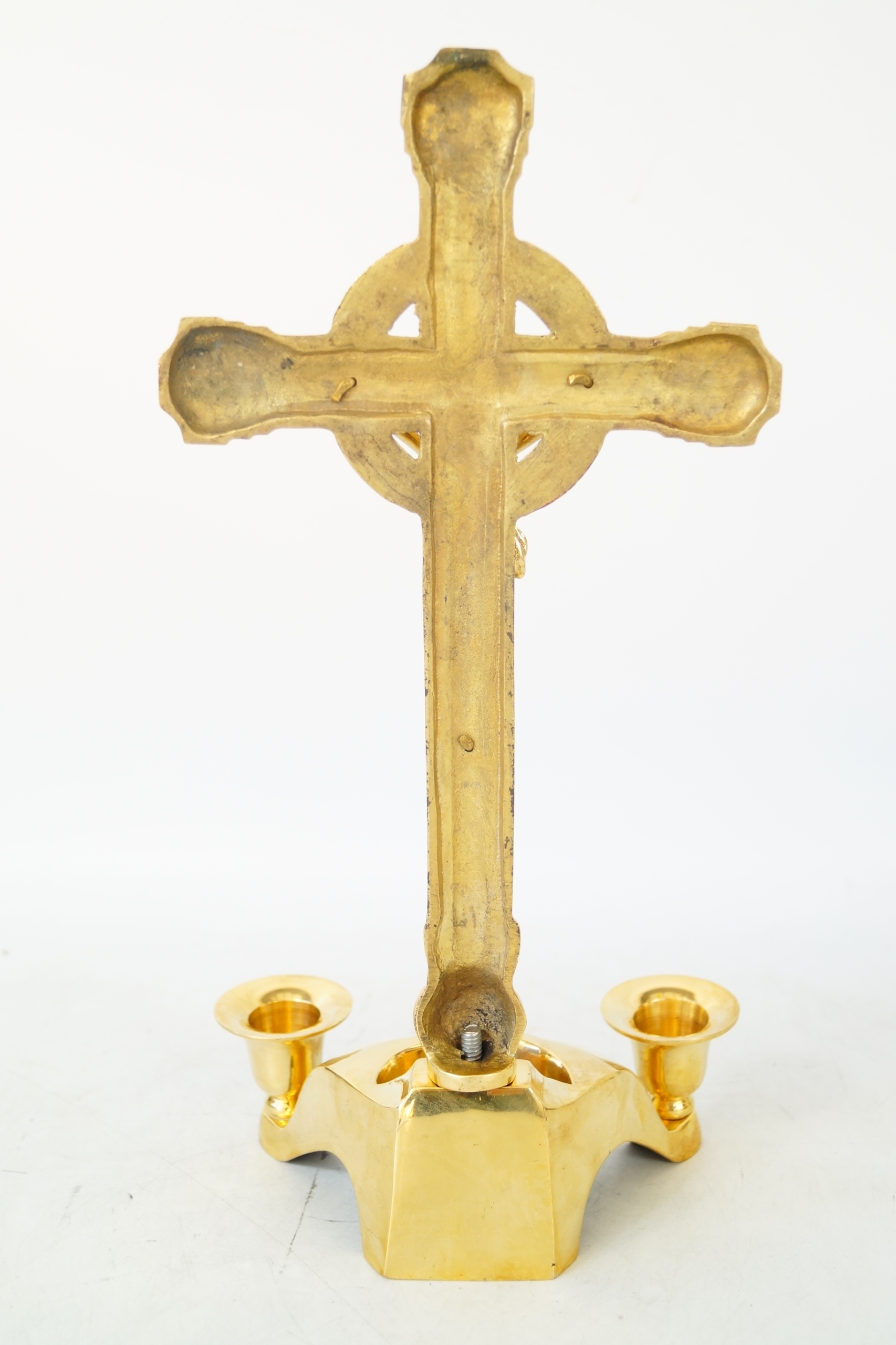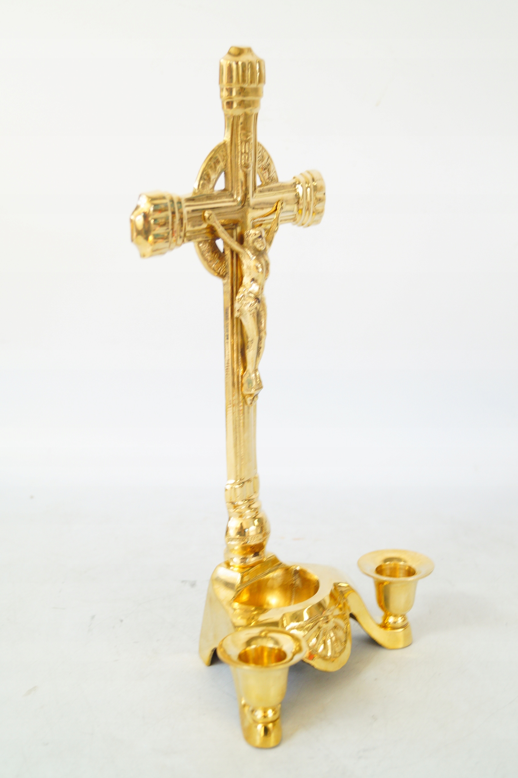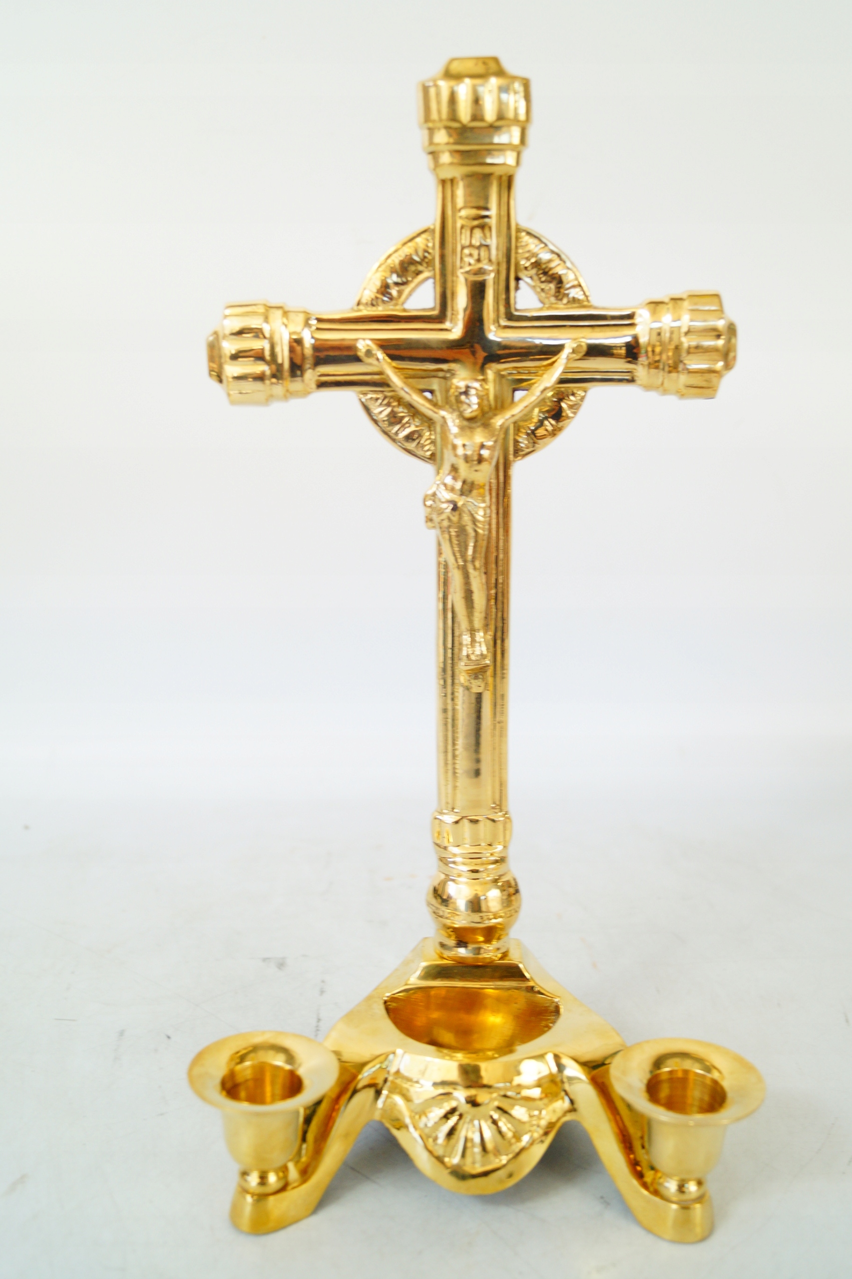 Хрест страсний ІСУС латунний, латунь, зі свічниками
