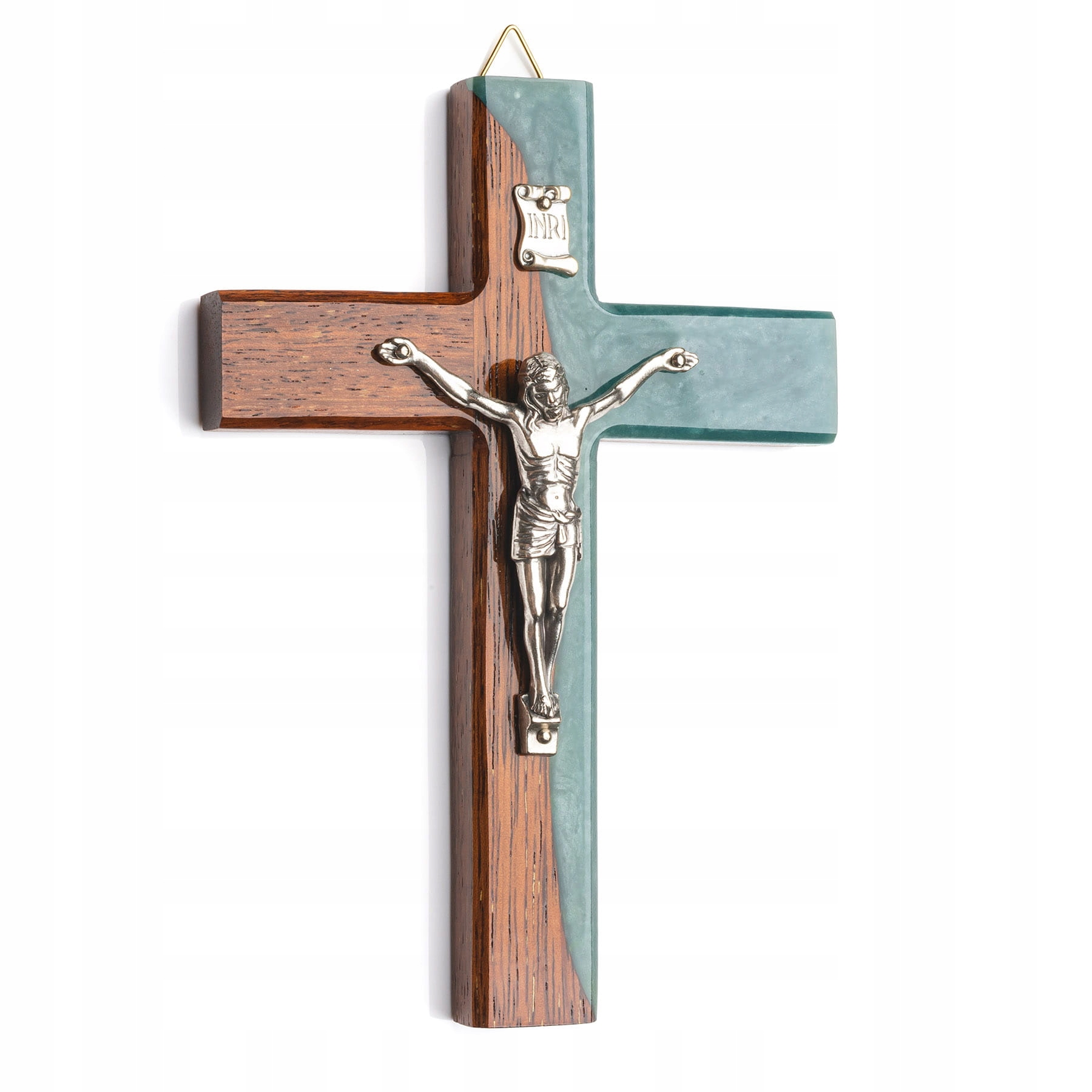 Хрестик з дерева Мербау та бірюзової смоли 20 см