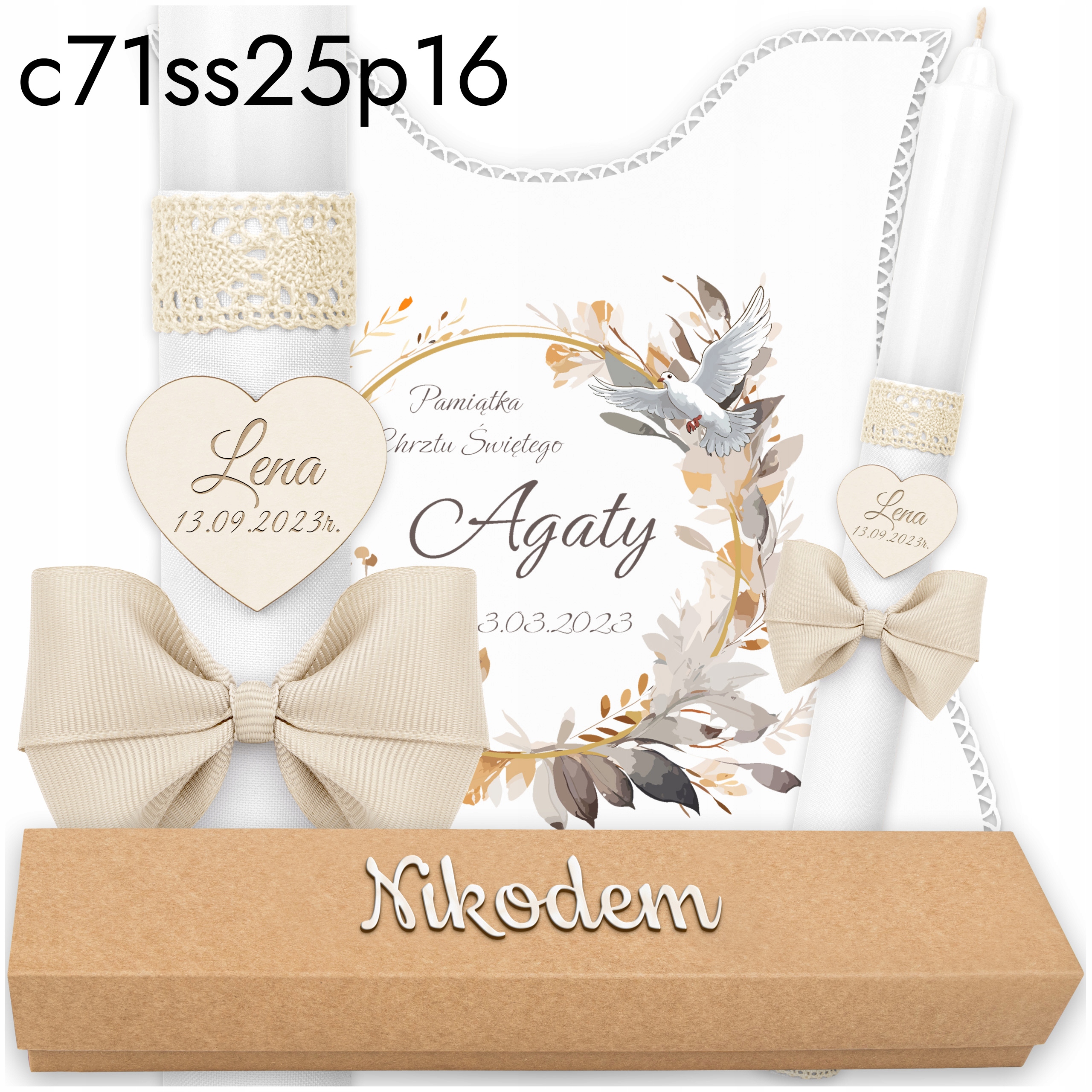 Хрестильне вбрання та свічка + коробка для свічок. Свічка для хрещення + коробка