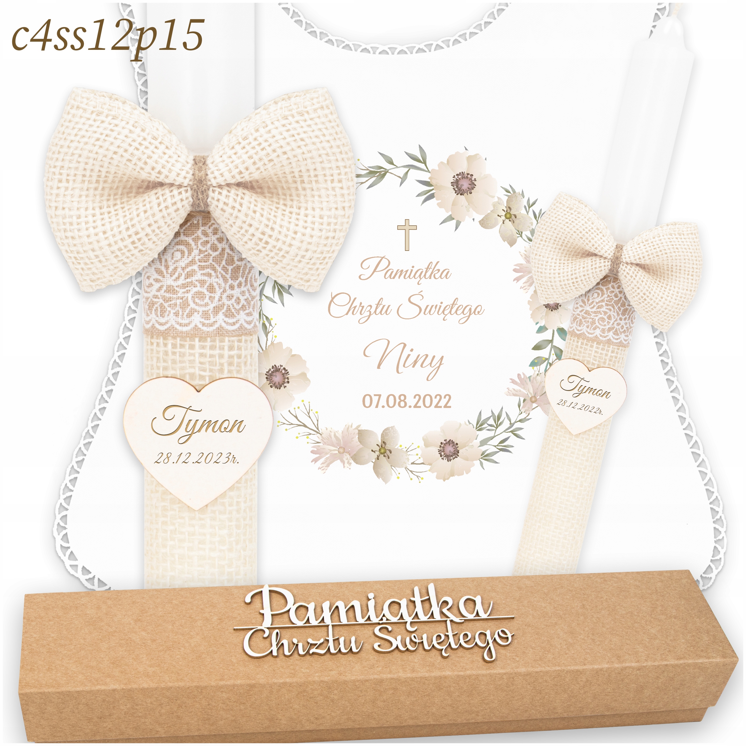 Хрестильна свічка + БІЛИЙ ОДЯГ + коробка