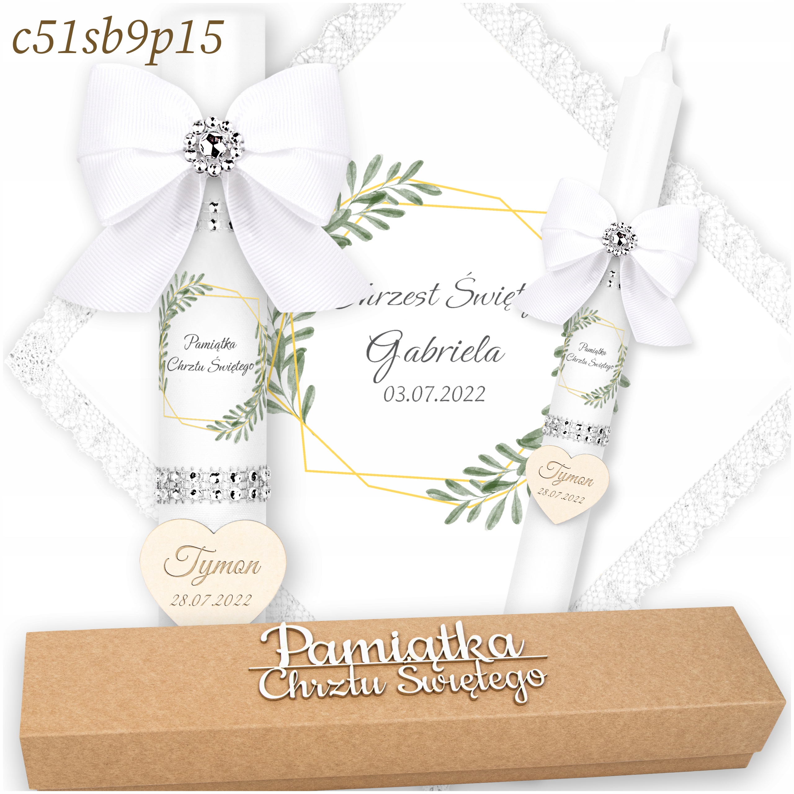 Хрестильна свічка + БІЛИЙ ОДЯГ + скринька
