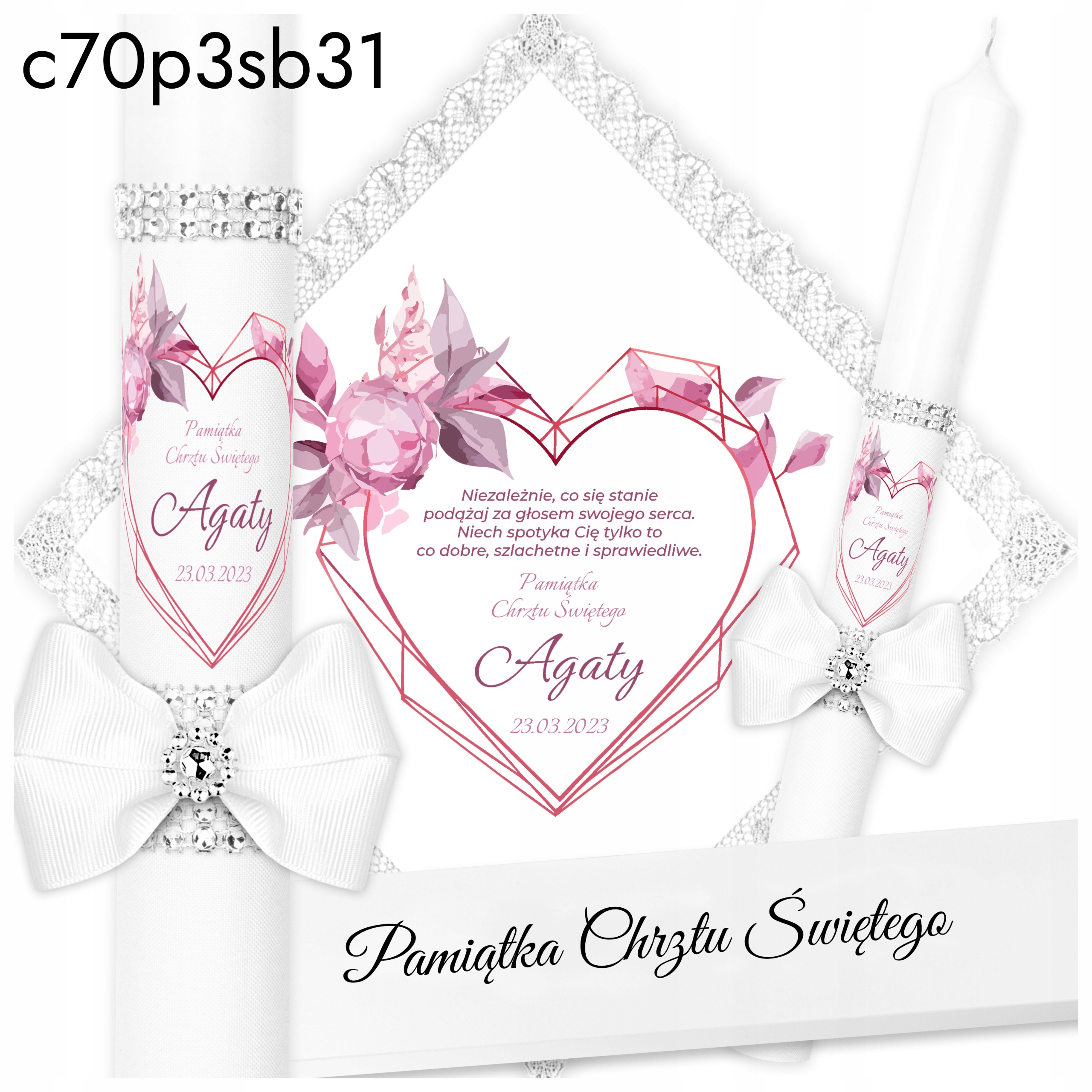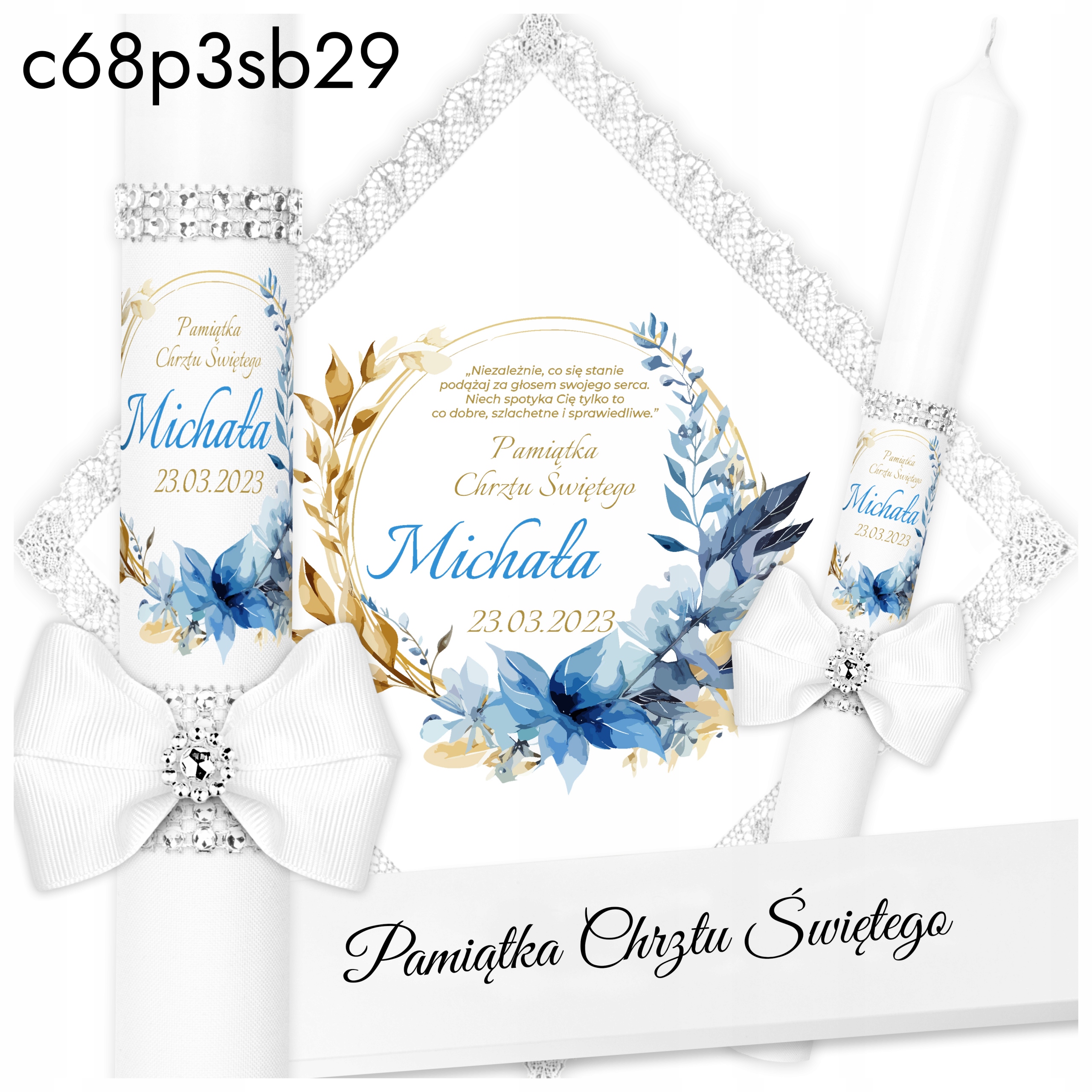 Хрестильна свічка, біла хрещальна риза, коробка