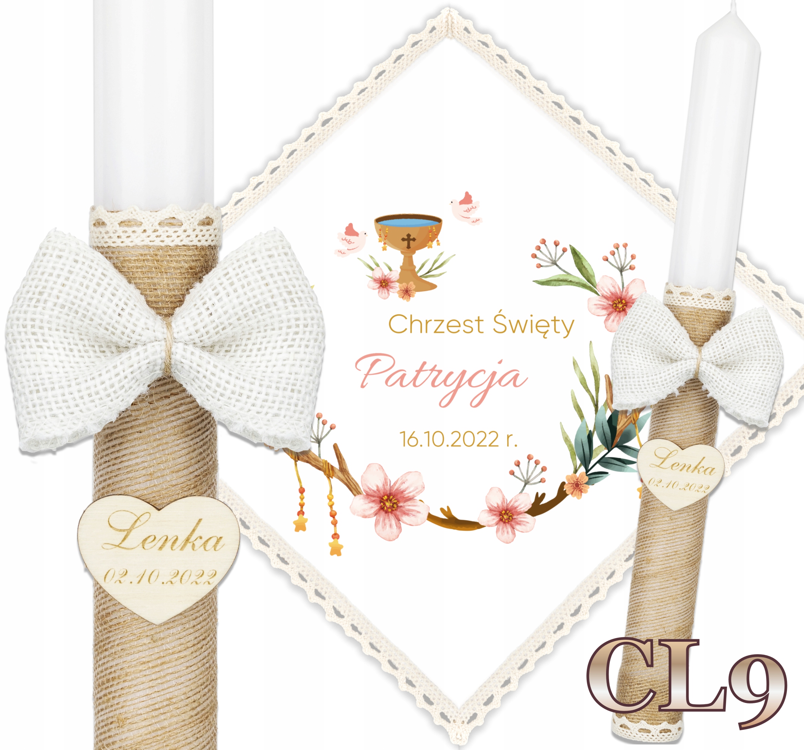 ✴️Хрестильна свічка b> прикрашений гравіюванням сердечка з іменем дитини та датою хрещення